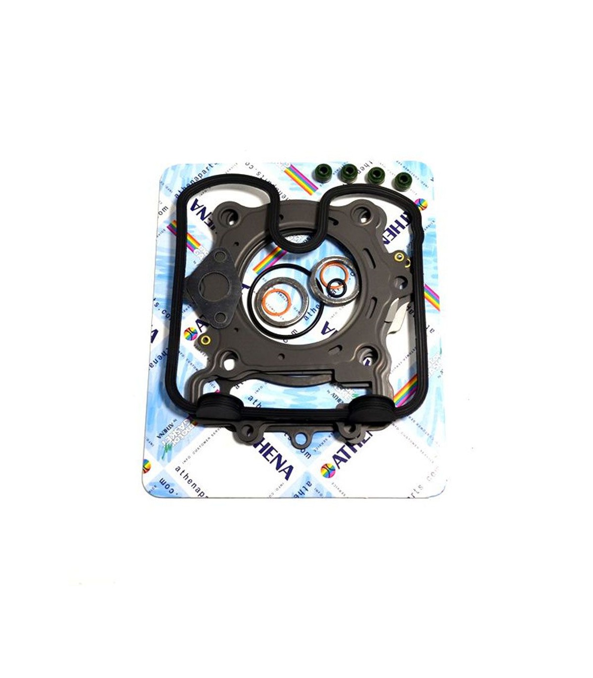 Kits de joints haut moteurKit de joints de qualité supérieure fabriqués par Athena S.p.A.Joints de culasse caractérisés par une structure ondulable en acier revêtu de caoutchoucLes joints d’embase en acier doux sont revêtus de caoutchoucLes matériaux de base en métal se caractérisent par une haute compression et une résistance à la tension supérieureLa couverture transparente révolutionnaire garantit une étanchéité parfaite même à des températures extrêmement élevéesCouche de silicone bleue de haute température sur la plupart de joints plats essentielsLes kits de joints haut-moteur comprennent tous les joints nécessaires pour reconstruire le joint haut du moteur à partir du joint d’embase, y compris les joints en caoutchouc comme les joints de cache-culasse, les joints toriques et le joint de queue de
