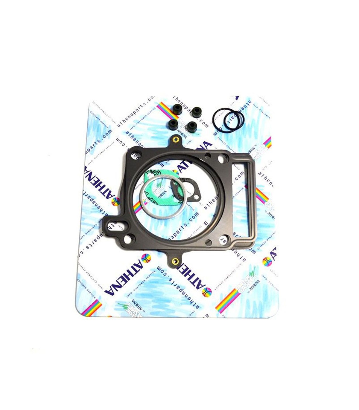 Kits de joints haut moteurKit de joints de qualité supérieure fabriqués par Athena S.p.A.Joints de culasse caractérisés par une structure ondulable en acier revêtu de caoutchoucLes joints d’embase en acier doux sont revêtus de caoutchoucLes matériaux de base en métal se caractérisent par une haute compression et une résistance à la tension supérieureLa couverture transparente révolutionnaire garantit une étanchéité parfaite même à des températures extrêmement élevéesCouche de silicone bleue de haute température sur la plupart de joints plats essentielsLes kits de joints haut-moteur comprennent tous les joints nécessaires pour reconstruire le joint haut du moteur à partir du joint d’embase, y compris les joints en caoutchouc comme les joints de cache-culasse, les joints toriques et le joint de queue de