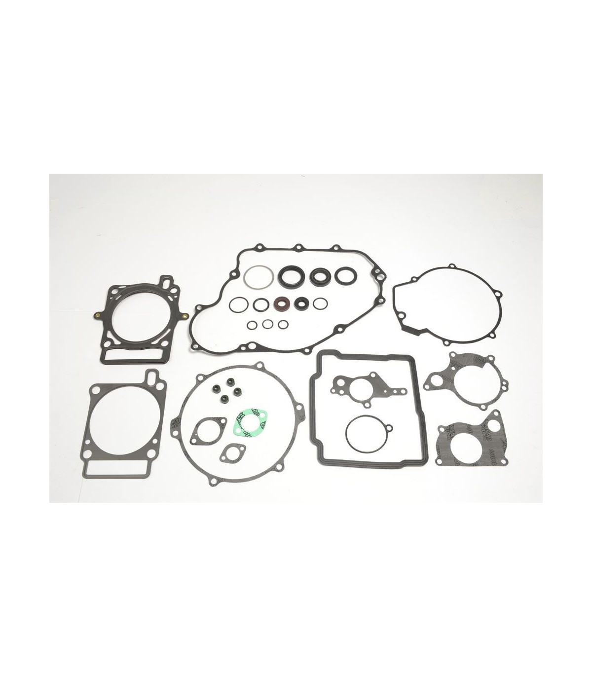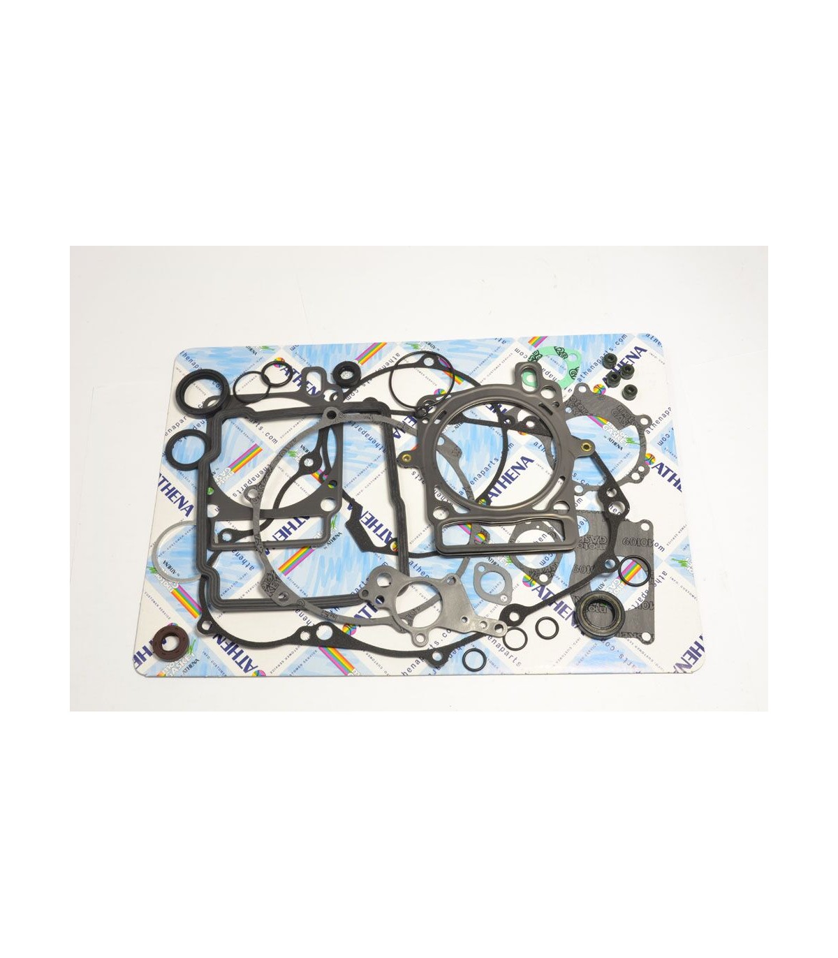 Kits de joints completKit de joints de qualité supérieure fabriqués par Athena S.p.A.Joints de culasse caractérisés par une structure ondulable en acier revêtu de caoutchoucLes joints d’embase en acier doux sont revêtus de caoutchoucLes matériaux de base en métal se caractérisent par une haute compression et une résistance à la tension supérieureLa couverture transparente révolutionnaire garantit une étanchéité parfaite même à des températures extrêmement élevéesCouche de silicone bleue de haute température sur la plupart de joints plats essentielsLes kits de joints complets comprennent tous les joints nécessaires pour reconstruire le joint haut et la partie inférieure du moteur, y compris tous les joints en caoutchouc et les joints toriques, partie supérieure et inférieure.