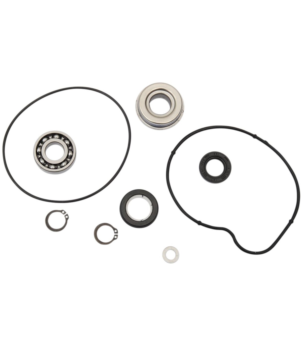 Kit réparation pompe à eauRenferme tous les joints, joints toriques, roulements et joints spy nécessaires pour réparer une pompe à eauLe kit contient les éléments suivants : roulements le cas échéant, joints en caoutchouc, joint de pompe à eau mécanique le cas échéant, joint de carter latéral, joint de pompe à eau, circlips sur l’axe de pompe à eau et joints de vidange en cuivre.