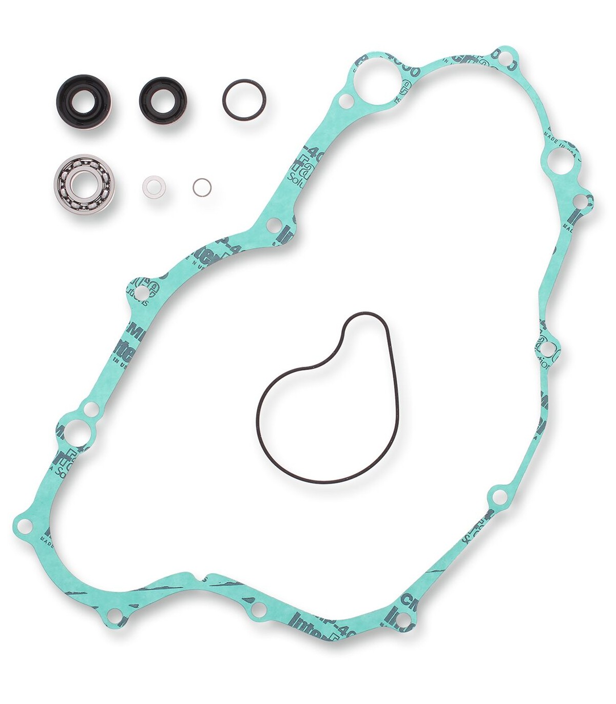 Kit réparation pompe à eauRenferme tous les joints, joints toriques, roulements et joints spy nécessaires pour réparer une pompe à eauLe kit contient les éléments suivants : roulements le cas échéant, joints en caoutchouc, joint de pompe à eau mécanique le cas échéant, joint de carter latéral, joint de pompe à eau, circlips sur l’axe de pompe à eau et joints de vidange en cuivre.