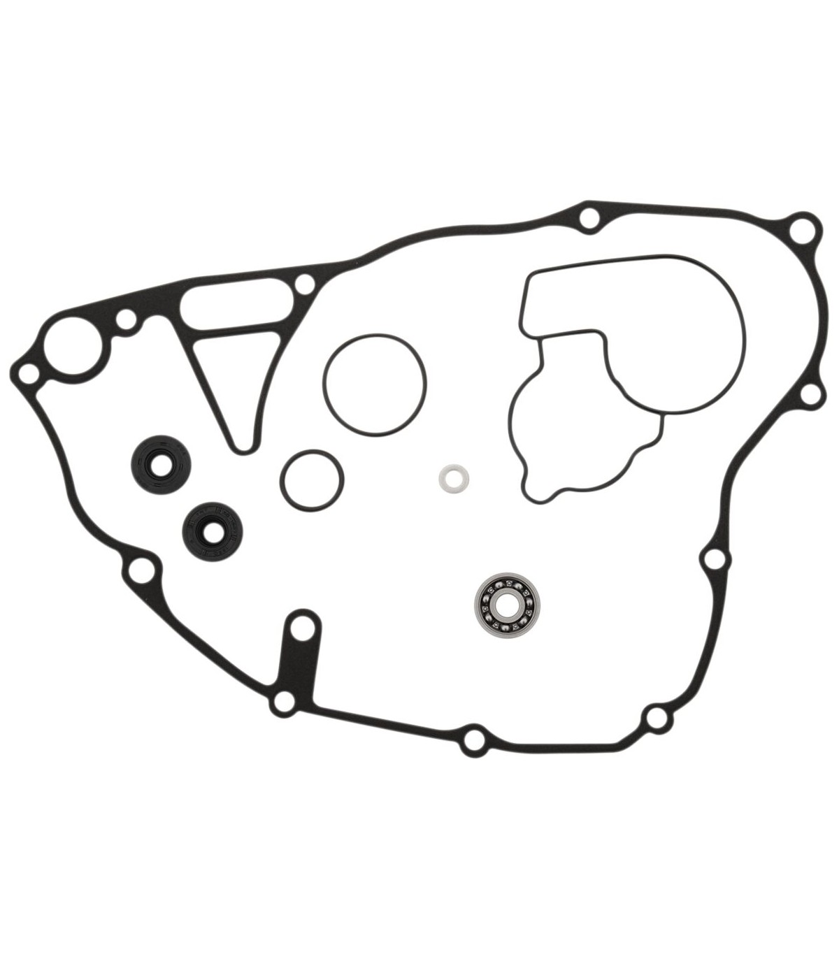 Kit réparation pompe à eauRenferme tous les joints, joints toriques, roulements et joints spy nécessaires pour réparer une pompe à eauLe kit contient les éléments suivants : roulements le cas échéant, joints en caoutchouc, joint de pompe à eau mécanique le cas échéant, joint de carter latéral, joint de pompe à eau, circlips sur l’axe de pompe à eau et joints de vidange en cuivre.