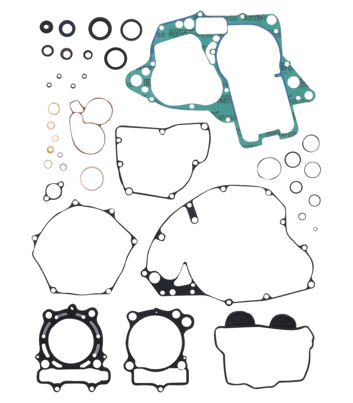 Ensemble de joints completJoints de culasse caractérisés par une structure ondulable en acier revêtu de caoutchoucLes joints d’embase en acier doux sont revêtus de caoutchoucLes matériaux de base en métal se caractérisent par une haute compression et une résistance à la tension supérieureLa révolutionnaire couverture transparente garantit une étanchéité parfaite même à des températures extrêmement élevéesCouche de silicone bleue de haute température sur la plupart de joints plats essentielsRenferme l’ensemble des joints, Silentbloc et joints de queue de soupape de qualité supérieure pour le moteur