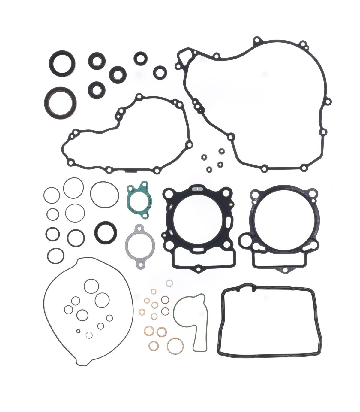 Kits de joints completKit de joints de qualité supérieure fabriqués par Athena S.p.A.Joints de culasse caractérisés par une structure ondulable en acier revêtu de caoutchoucLes joints d’embase en acier doux sont revêtus de caoutchoucLes matériaux de base en métal se caractérisent par une haute compression et une résistance à la tension supérieureLa couverture transparente révolutionnaire garantit une étanchéité parfaite même à des températures extrêmement élevéesCouche de silicone bleue de haute température sur la plupart de joints plats essentielsLes kits de joints complets comprennent tous les joints nécessaires pour reconstruire le joint haut et la partie inférieure du moteur, y compris tous les joints en caoutchouc et les joints toriques, partie supérieure et inférieure.