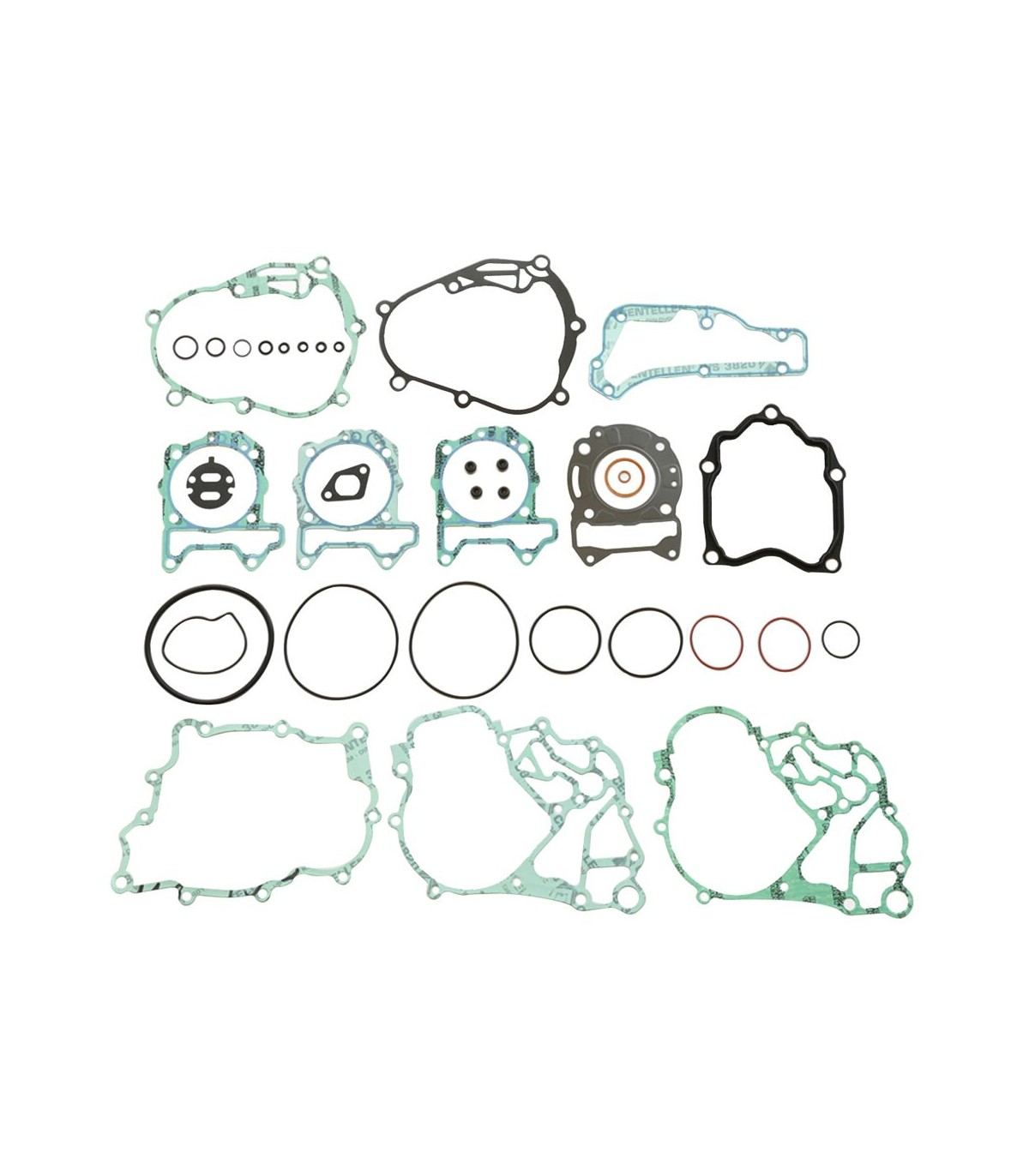 Kits de joints completKit de joints de qualité supérieure fabriqués par Athena S.p.A.Joints de culasse caractérisés par une structure ondulable en acier revêtu de caoutchoucLes joints d’embase en acier doux sont revêtus de caoutchoucLes matériaux de base en métal se caractérisent par une haute compression et une résistance à la tension supérieureLa couverture transparente révolutionnaire garantit une étanchéité parfaite même à des températures extrêmement élevéesCouche de silicone bleue de haute température sur la plupart de joints plats essentielsLes kits de joints complets comprennent tous les joints nécessaires pour reconstruire le joint haut et la partie inférieure du moteur, y compris tous les joints en caoutchouc et les joints toriques, partie supérieure et inférieure.