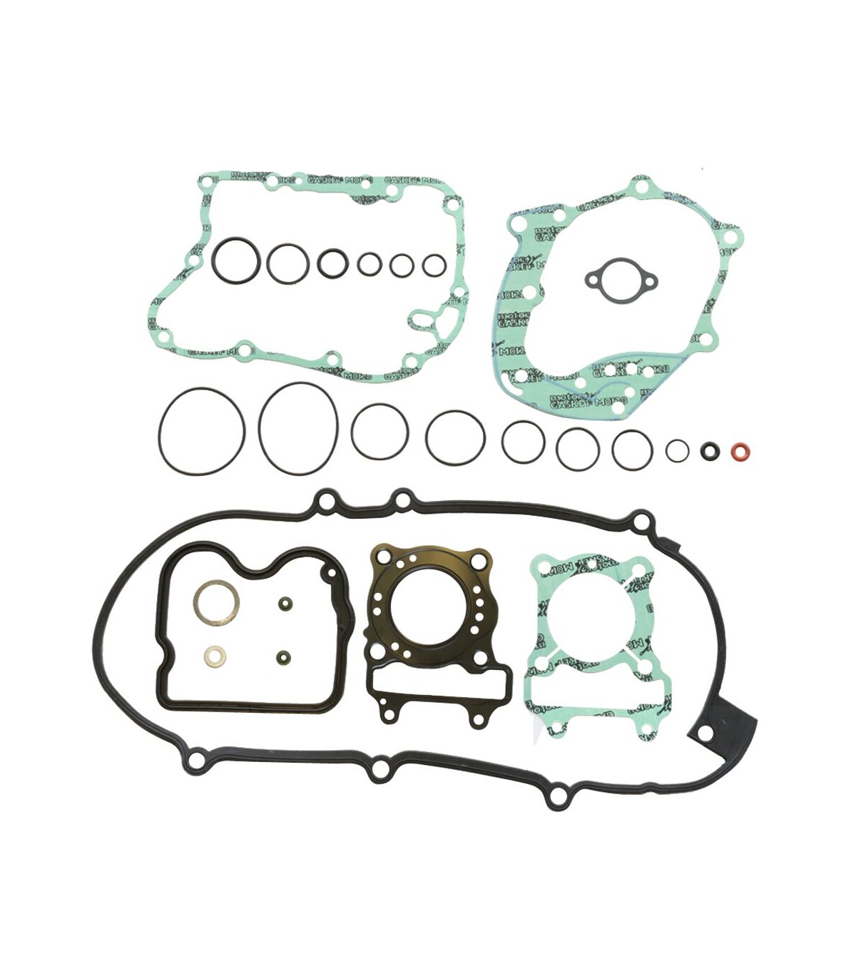 Kits de joints completKit de joints de qualité supérieure fabriqués par Athena S.p.A.Joints de culasse caractérisés par une structure ondulable en acier revêtu de caoutchoucLes joints d’embase en acier doux sont revêtus de caoutchoucLes matériaux de base en métal se caractérisent par une haute compression et une résistance à la tension supérieureLa couverture transparente révolutionnaire garantit une étanchéité parfaite même à des températures extrêmement élevéesCouche de silicone bleue de haute température sur la plupart de joints plats essentielsLes kits de joints complets comprennent tous les joints nécessaires pour reconstruire le joint haut et la partie inférieure du moteur, y compris tous les joints en caoutchouc et les joints toriques, partie supérieure et inférieure.