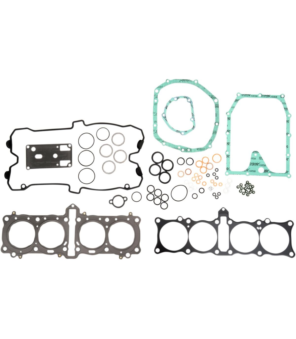 Kit de jointsJeux de joints de qualité supérieure fabriqués par AthenaJoints de culasse caractérisés par une structure ondulable en acier revêtu de caoutchoucLes joints d’embase en acier doux sont revêtus de caoutchoucLes matériaux de base en métal se caractérisent par une haute compression et une résistance à la tension supérieureLa révolutionnaire couverture transparente garantit une étanchéité parfaite même à des températures extrêmement élevéesCouche de silicone bleue de haute température sur la plupart de joints plats essentielsInclut les joints, pièces en caoutchouc et joints de queue de soupape de qualité supérieure nécessaires au reconditionnement, respectivement, du haut-moteur et du moteur completJoints spy non inclus
