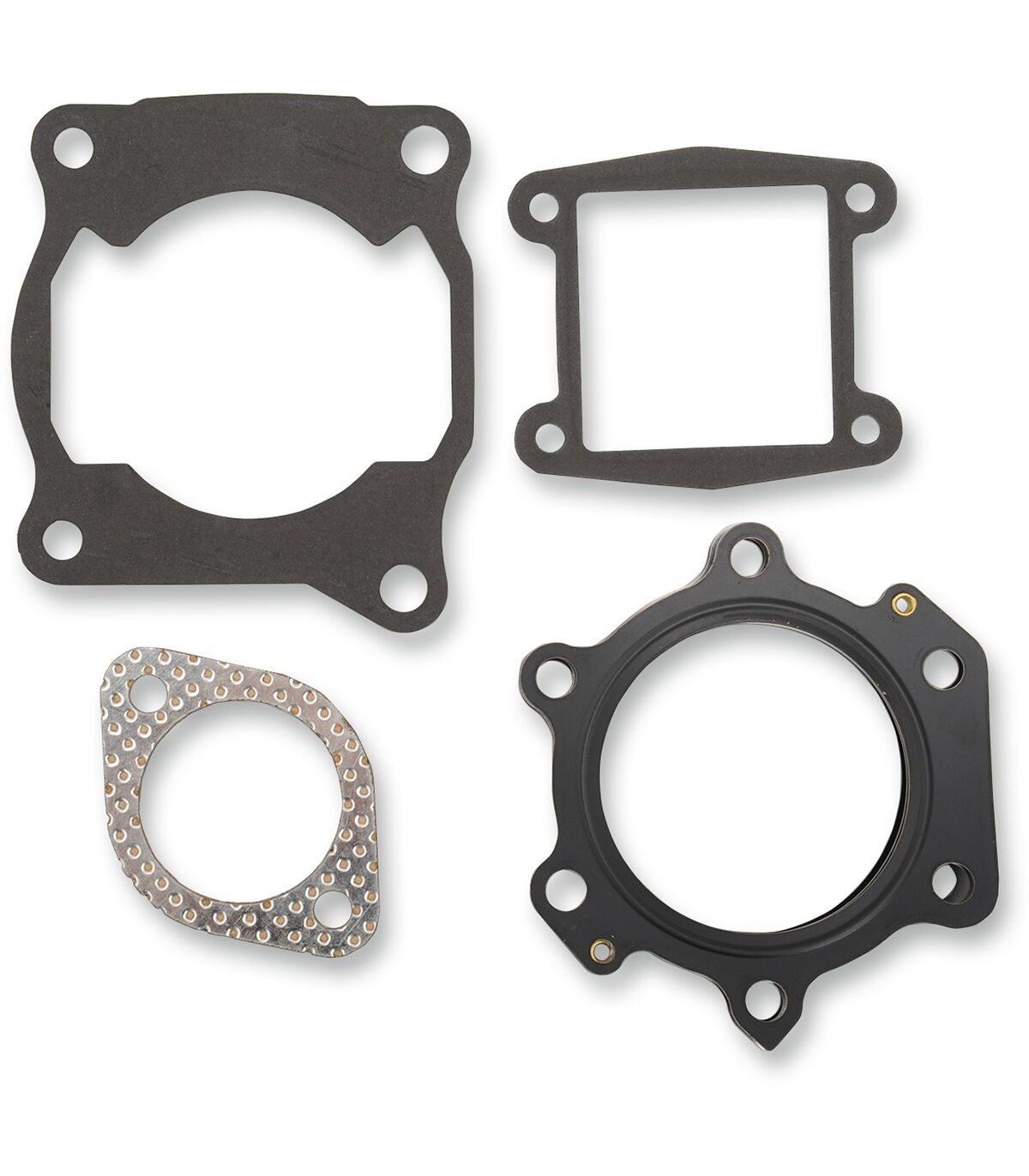 Pochette de joints culasse et embaseLe kit de joints pour haut-moteur inclut les joints d’embase et de culasse et joints toriques de cylindre adéquats ainsi que d’autres joints ou joints toriques propres au haut-moteur nécessaires pour le reconditionnement ou la réparation de ce dernier.Les culasses en MLS permettent une distribution de la charge de couple homogène sur toute la surface d’étanchéité du joint, diminuant ainsi l’altération du cylindre et fournissant une meilleure étanchéité du segment pour obtenir plus de puissanceLes joints de culasse 4 temps sont conçus pour fonctionner sur les machines actuelles à 4 temps, qui disposent de la puissance la plus élevée et qui sont naturellement aspirées et boostées ; ils disposent d'un design en acier multi-couches dont la couche extérieure est estampée et recouverte de caoutchouc Viton ; ces joints de culasse sont conçus pour répondre aux exigences des moteurs actuels, qui disposent de cylindres sous haute pression et d’une puissance élevéeLe kit de joints EST (Extreme Sealing Technology) renferme des joints de culasse, d’embase et de culbuteur en acier inoxydable estampés recouverts d’un caoutchouc exclusif.Le matériau du joint de culasse permet d’éloigner la chaleur du segment de combustion et de la répartir équitablement sur toute la surface du joint, afin d’éliminer les points de chaleur et de prévenir la rupture du jointFabrication aux États-UnisContains EST gaskets.