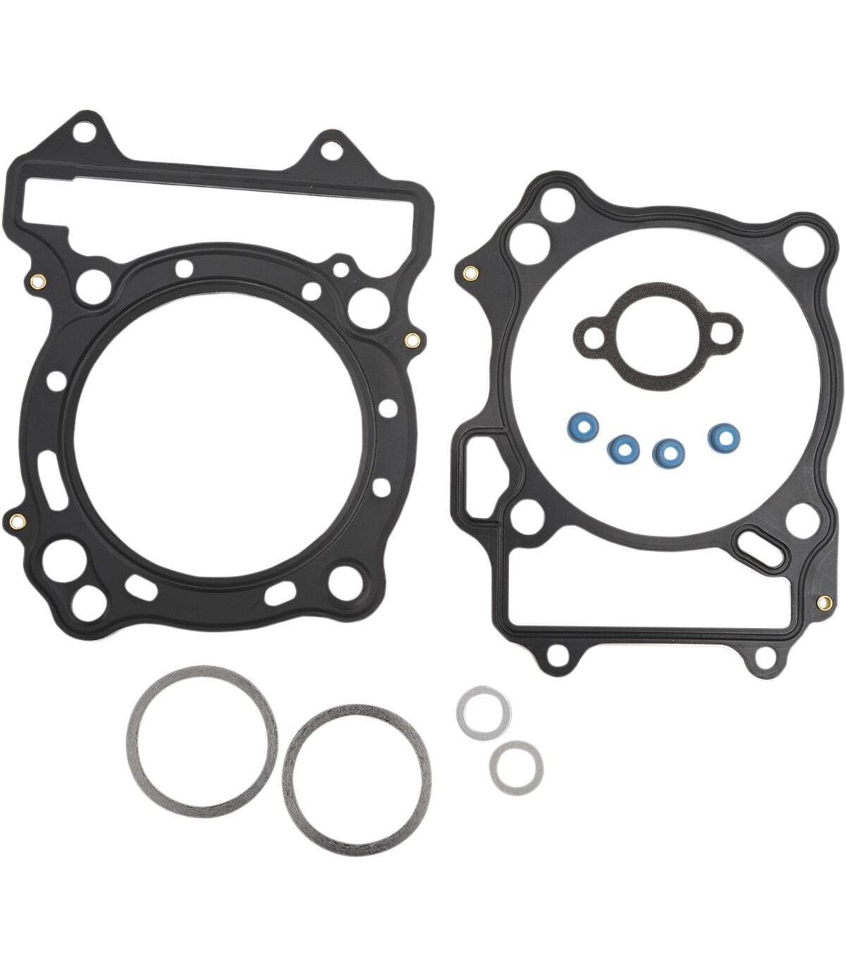 Pochette de joints culasse et embaseLe kit de joints pour haut-moteur inclut les joints d’embase et de culasse et joints toriques de cylindre adéquats ainsi que d’autres joints ou joints toriques propres au haut-moteur nécessaires pour le reconditionnement ou la réparation de ce dernier.Les culasses en MLS permettent une distribution de la charge de couple homogène sur toute la surface d’étanchéité du joint, diminuant ainsi l’altération du cylindre et fournissant une meilleure étanchéité du segment pour obtenir plus de puissanceLes joints de culasse 4 temps sont conçus pour fonctionner sur les machines actuelles à 4 temps, qui disposent de la puissance la plus élevée et qui sont naturellement aspirées et boostées ; ils disposent d'un design en acier multi-couches dont la couche extérieure est estampée et recouverte de caoutchouc Viton ; ces joints de culasse sont conçus pour répondre aux exigences des moteurs actuels, qui disposent de cylindres sous haute pression et d’une puissance élevéeLe kit de joints EST (Extreme Sealing Technology) renferme des joints de culasse, d’embase et de culbuteur en acier inoxydable estampés recouverts d’un caoutchouc exclusif.Le matériau du joint de culasse permet d’éloigner la chaleur du segment de combustion et de la répartir équitablement sur toute la surface du joint, afin d’éliminer les points de chaleur et de prévenir la rupture du jointFabrication aux États-UnisContient des joints EST