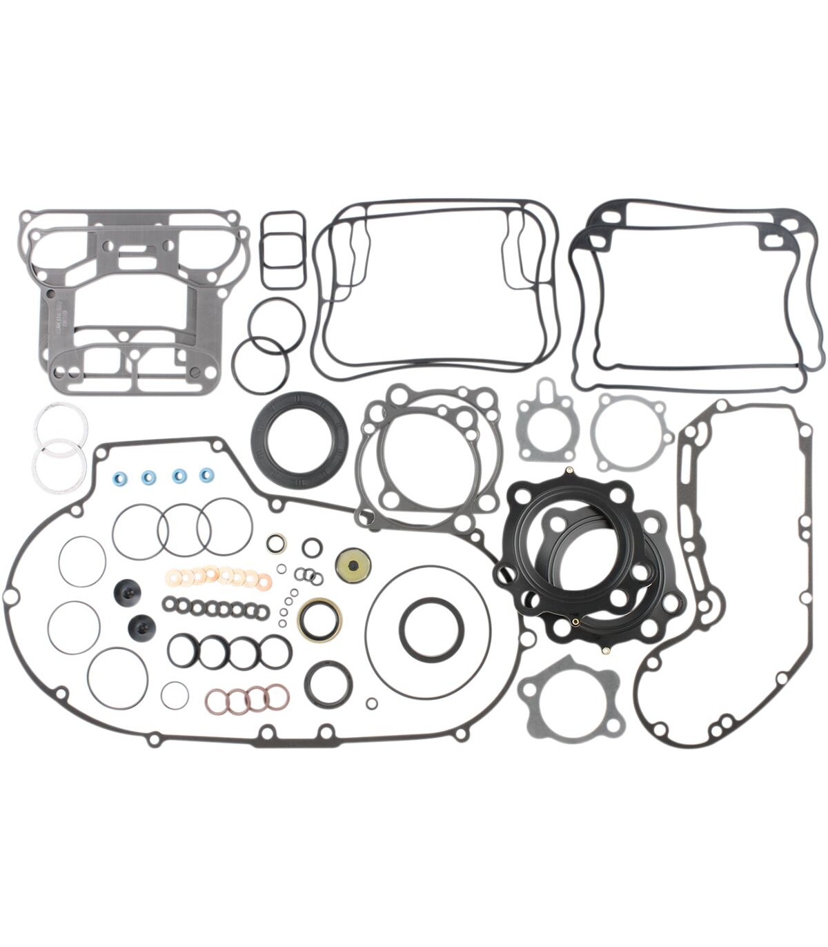 Kits de joints avec technologie EST (Extreme Sealing Technology) completsChacun des joints de ces kits est fabriqué avec les meilleurs matériaux possibles, en fonction de l’application prévueJoints de culasse MLS (Multi-Layer Steel)Joints d’embase en acier recouvert de Viton®Joints de queue de soupape en Viton bleuJoints d’échappement de type race en AFM (Aluminum Foam Material)Les kits complets renferment le jeu de joints pour moteur, ainsi que des joints pour transmission primaire, trappe d’embrayage et cache d’inspection (s’il y a lieu).Fabrication aux États-Unis.