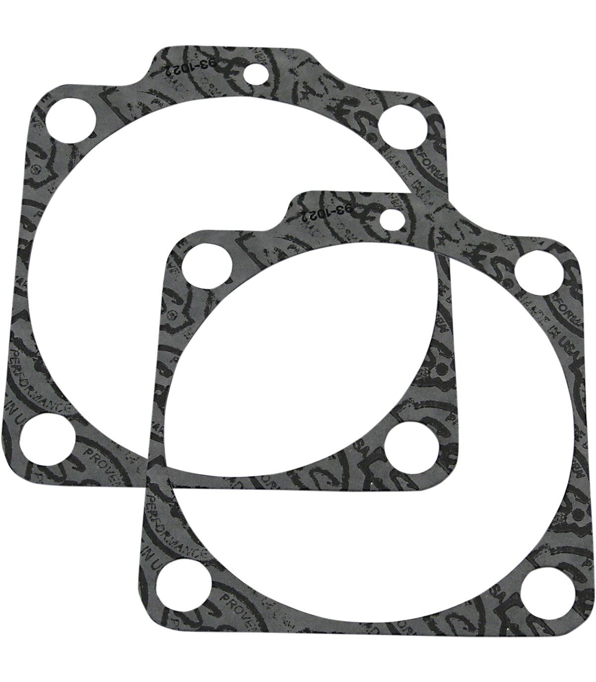 Joints d’embaseLes joints d’embase sont fabriqués en un composé micropore S&S Pro-Formance, qui résiste aux problèmes liés à l’extrusion ou à l’éclatement (des tests le prouvent).Fabrication aux États-Unis.Les cylindres S&S arrière de style Shovelhead ne sont pas dotés de la bride à base large de type origine. Les joints d’embase estampillés S&S pour Shovelhead sont identiques à l’avant et à l’arrière.