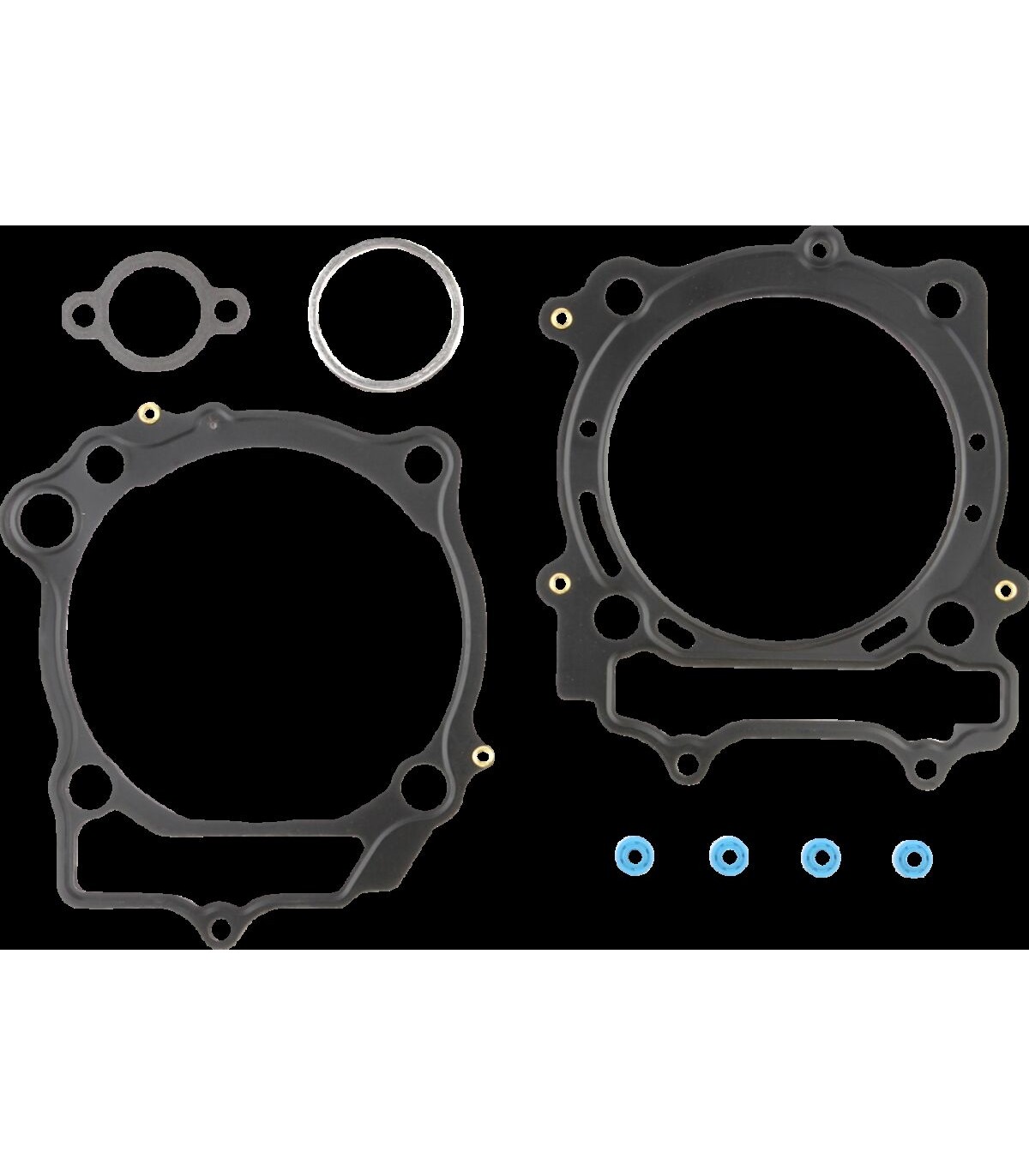 Pochette de joints culasse et embaseLe kit de joints pour haut-moteur inclut les joints d’embase et de culasse et joints toriques de cylindre adéquats ainsi que d’autres joints ou joints toriques propres au haut-moteur nécessaires pour le reconditionnement ou la réparation de ce dernier.Les culasses en MLS permettent une distribution de la charge de couple homogène sur toute la surface d’étanchéité du joint, diminuant ainsi l’altération du cylindre et fournissant une meilleure étanchéité du segment pour obtenir plus de puissanceLes joints de culasse 4 temps sont conçus pour fonctionner sur les machines actuelles à 4 temps, qui disposent de la puissance la plus élevée et qui sont naturellement aspirées et boostées ; ils disposent d'un design en acier multi-couches dont la couche extérieure est estampée et recouverte de caoutchouc Viton ; ces joints de culasse sont conçus pour répondre aux exigences des moteurs actuels, qui disposent de cylindres sous haute pression et d’une puissance élevéeLe kit de joints EST (Extreme Sealing Technology) renferme des joints de culasse, d’embase et de culbuteur en acier inoxydable estampés recouverts d’un caoutchouc exclusif.Le matériau du joint de culasse permet d’éloigner la chaleur du segment de combustion et de la répartir équitablement sur toute la surface du joint, afin d’éliminer les points de chaleur et de prévenir la rupture du jointFabrication aux États-Unis