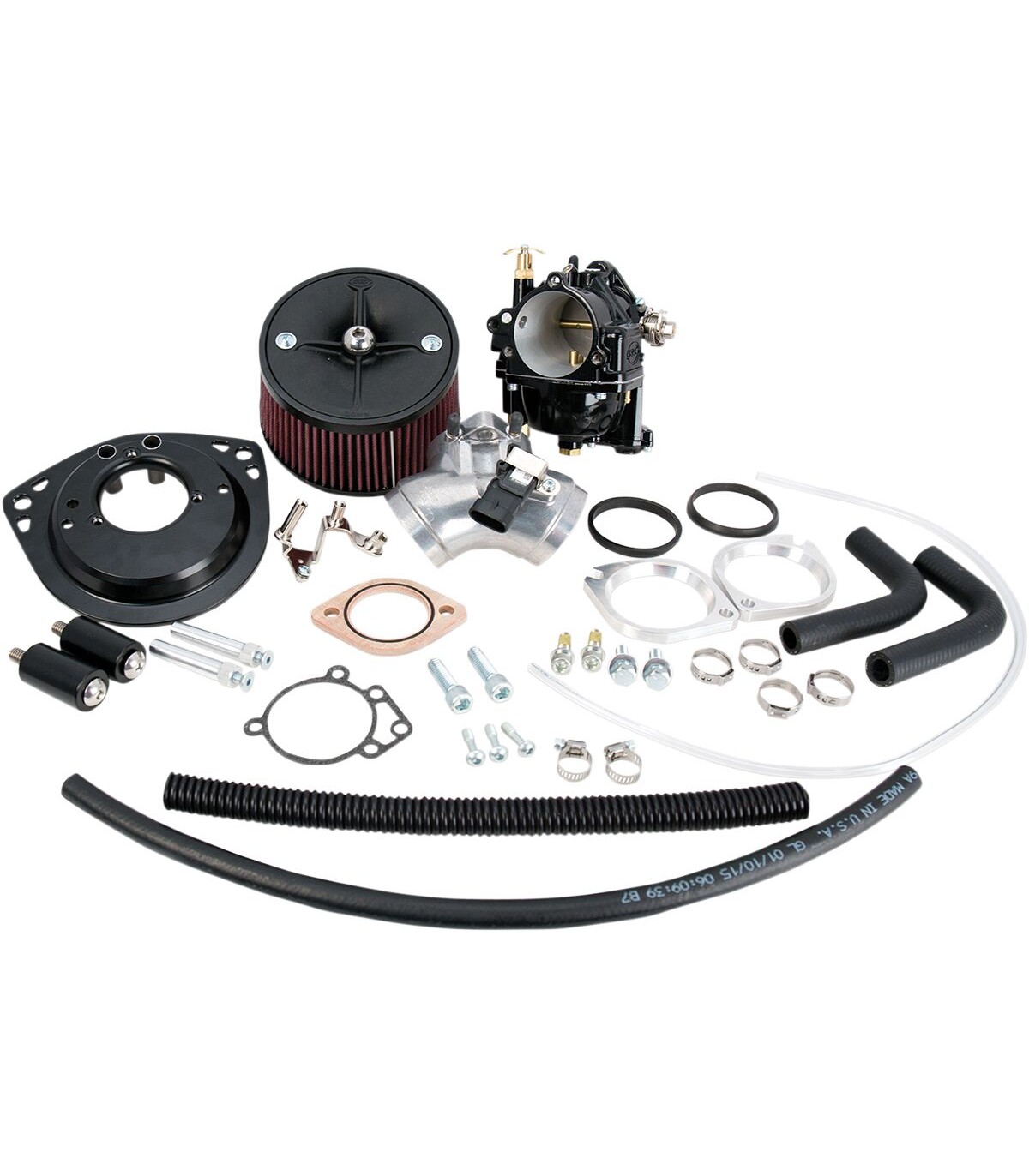 Kit de carburateur Super GLe kit carburateur comprend un carburateur avec pots d’acheminement de l’essence et vis de ralenti modernisés, un assemblage de filtre à air S&S en forme de goutte d’eau, un collecteur, le matériel de montage, une durite de carburant, des colliers de serrLe carburateur dispose d’une admission de?2,065" au niveau du papillon et d’un venturi de?1,75" et est recommandé pour une utilisation sur les moteurs hautes performances modifiés de 90 pouces cubes et plus.Les carburateurs Super G S&S exigent le recours à un câble de tirage/de retour double.Non conseillé pour les petits moteurs à faible compressionFabrication aux États-UnisSans cache de filtre à air. Le cache 99-06 d’usine ou tout autre cache de style S&S Stealth peut être utilisé (vente à part).
