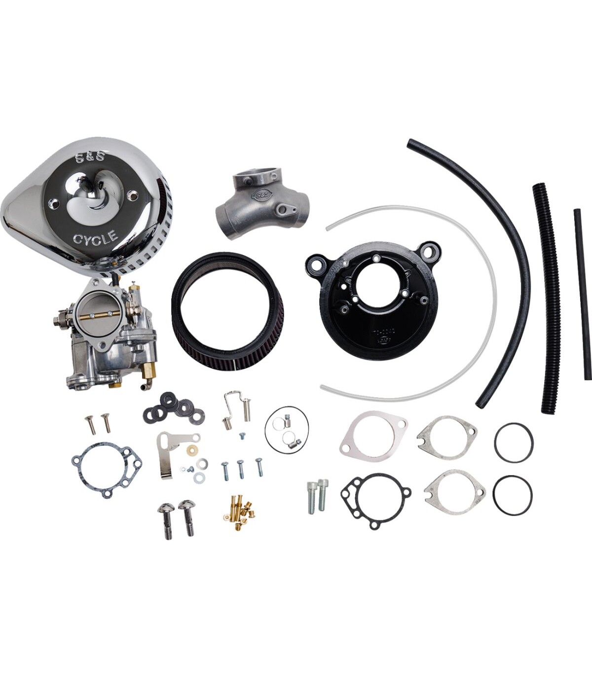 Kit de carburateur Super G avec filtre à air StealthPompe d'accélérateur réglable pour une réponde rapide à l'accélérateur et un démarrage rapideL’utilisation du système à deux câbles garantit un fonctionnement sûrSystème de démarrage par enrichissement à position variableVis de réglage de ralenti à joint toriqueFabrication aux États-Unis