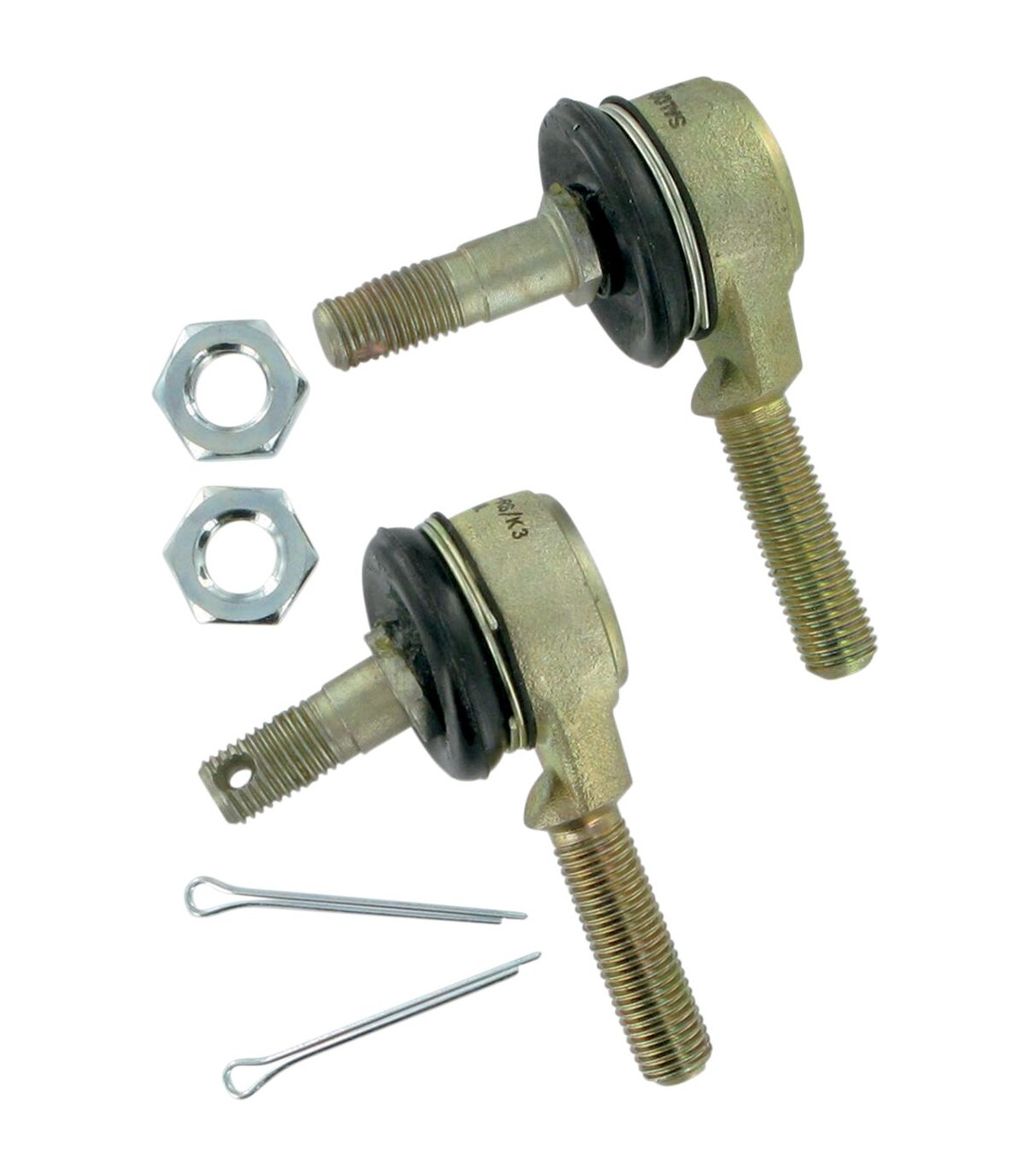 Kit de rotule de directionChaque kit contient deux rotule de direction de qualité - l’une avec un filetage de droite et l’autre avec un filetage de gauche - ainsi que des goupilles et des contre-écrousLes rotules sont renforcées, et elles peuvent être placées directement, tout en coûtant bien moins cher que les pièces d’origineVendues par kits pour une rotule ; il faut deux kits par véhicule