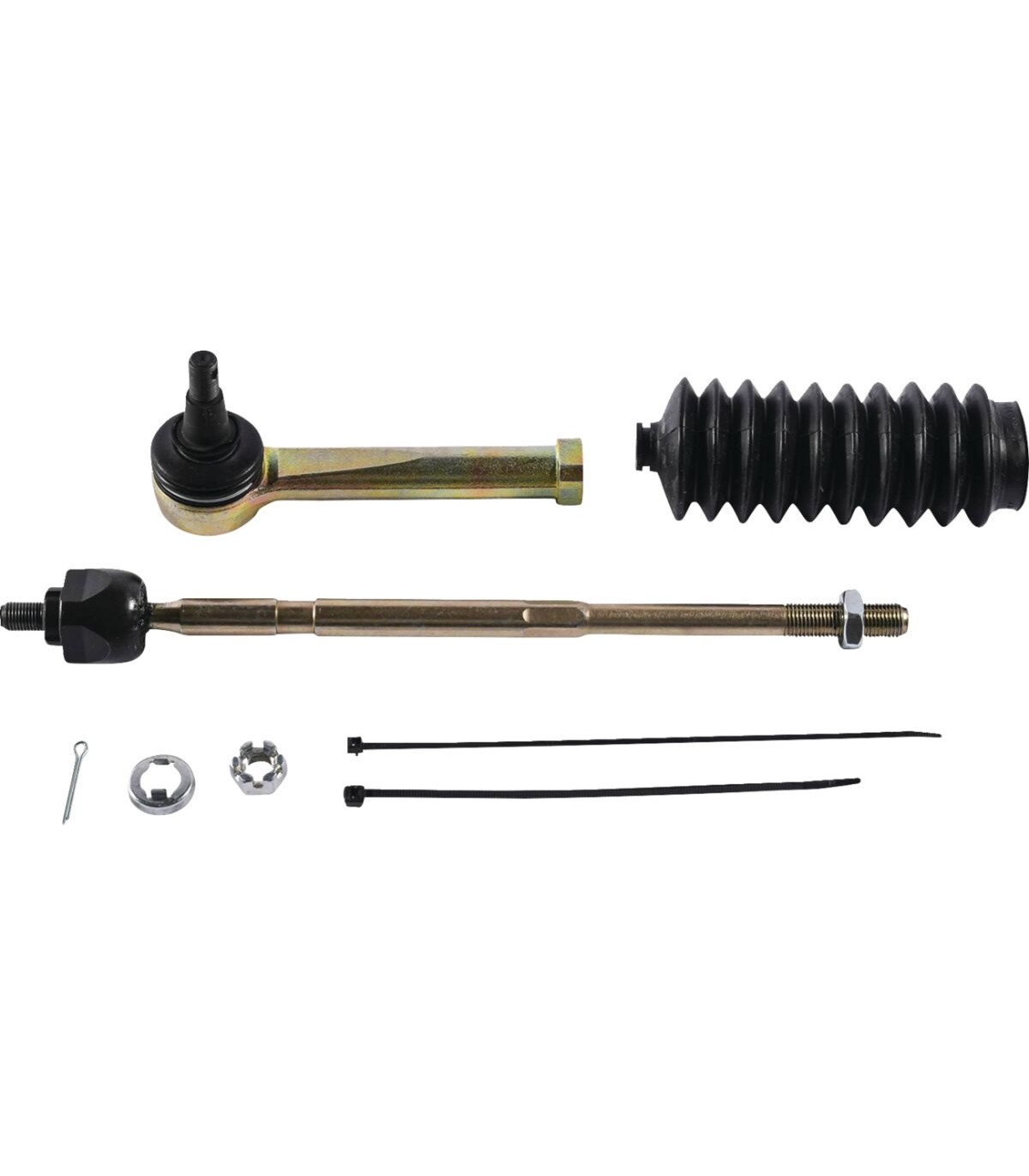 Kit de rotule de directionChaque kit contient deux rotule de direction de qualité - l’une avec un filetage de droite et l’autre avec un filetage de gauche - ainsi que des goupilles et des contre-écrousLes rotules sont renforcées, et elles peuvent être placées directement, tout en coûtant bien moins cher que les pièces d’origineVendues par kits pour une rotule ; il faut deux kits par véhicule