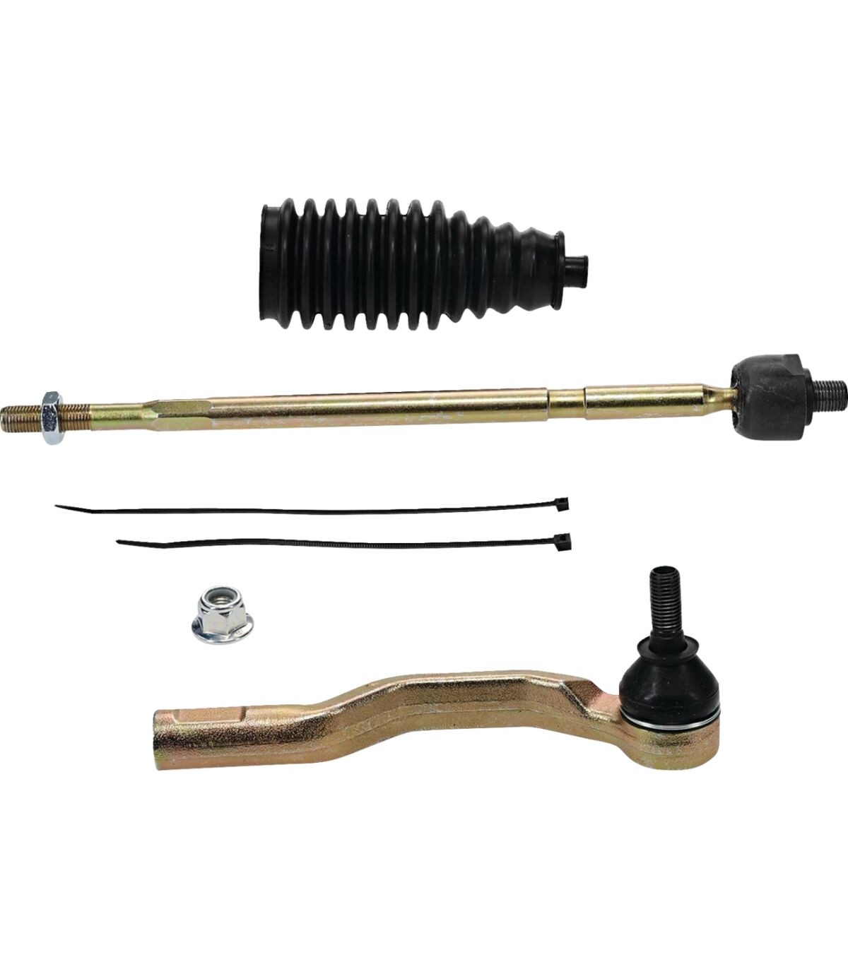 Kit de rotule de directionChaque kit contient deux rotule de direction de qualité - l’une avec un filetage de droite et l’autre avec un filetage de gauche - ainsi que des goupilles et des contre-écrousLes rotules sont renforcées, et elles peuvent être placées directement, tout en coûtant bien moins cher que les pièces d’origineVendues par kits pour une rotule ; il faut deux kits par véhicule