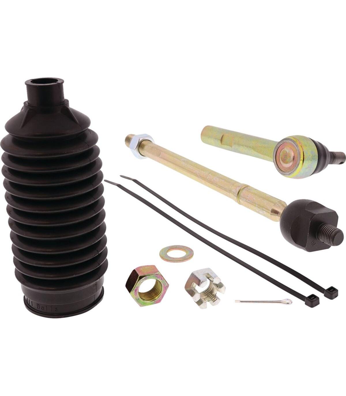 Kit de rotule de directionChaque kit contient deux rotule de direction de qualité - l’une avec un filetage de droite et l’autre avec un filetage de gauche - ainsi que des goupilles et des contre-écrousLes rotules sont renforcées, et elles peuvent être placées directement, tout en coûtant bien moins cher que les pièces d’origineVendues par kits pour une rotule ; il faut deux kits par véhicule