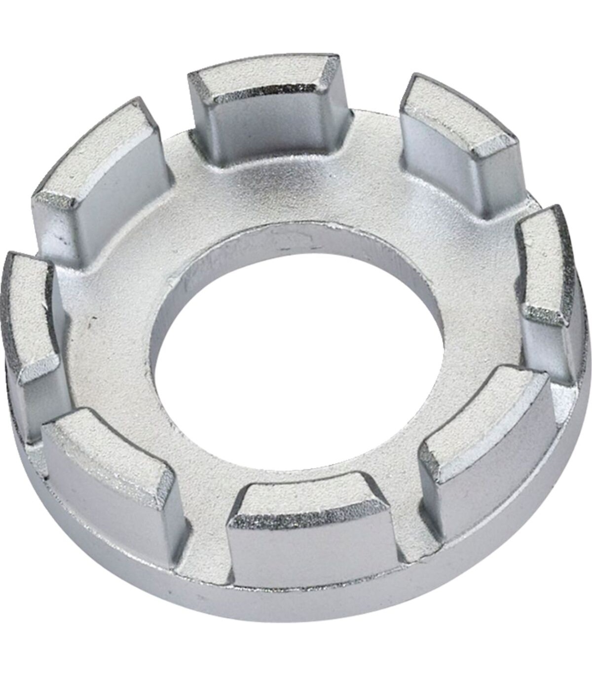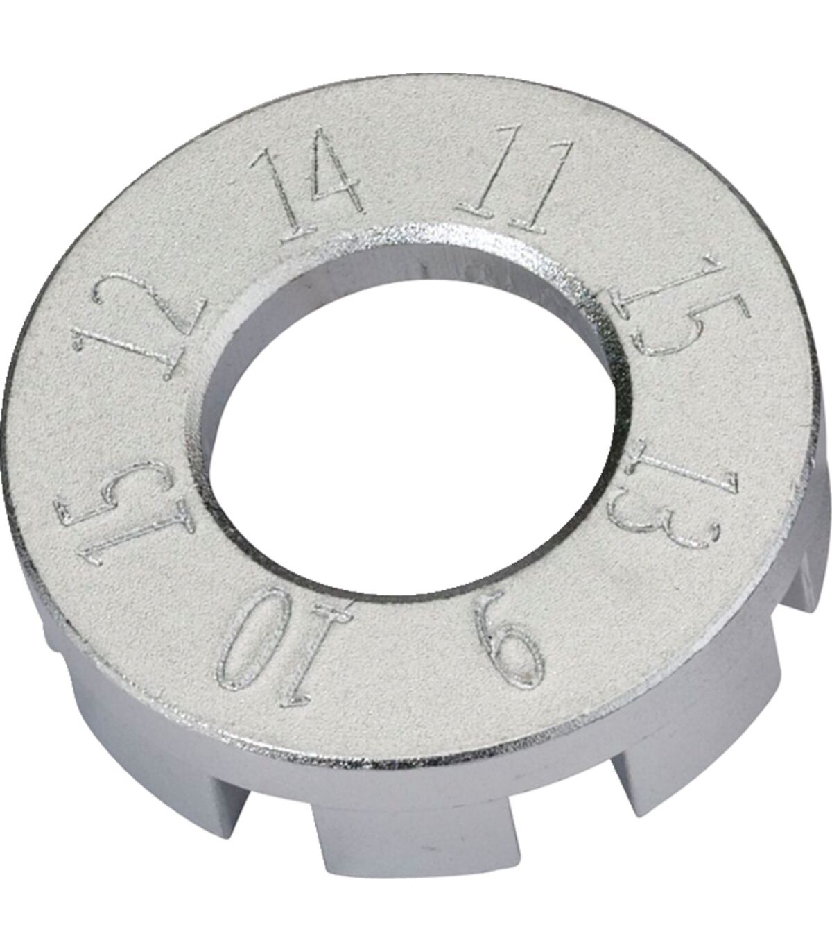 Mountain Bike Spoke WrenchUniversal spoke wrench that includes 9-15G fitmentsIncludes 9 through 15 gauge fitments with the size numbers stamped into the wrenchForged steel material with hard chrome finishLightweight, compact design for easy storage