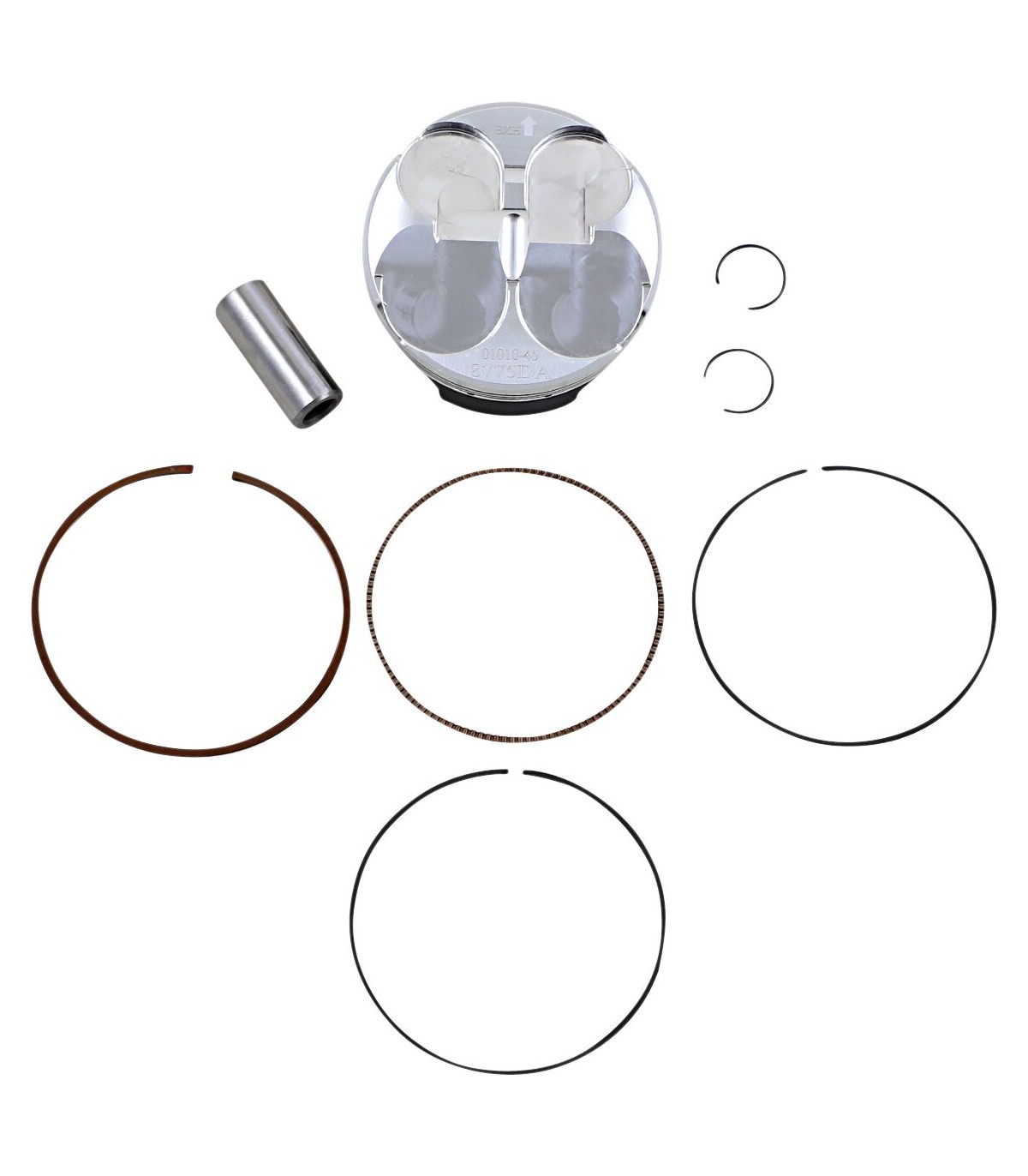 Piston Kit for 4 StrokeEnhanced piston pin oiling slots, radial boss machining, and annular grooves for improved wrist pin lubricationLightweight piston with a tight piston wall clearance for a quieter running engineSkirt coated for reduced friction and improved break in performanceRing land treatment for improved ring seal and oil controlDouble bridged forging design where notedKit includes piston, rings, wrist pin and pin locksDouble bridge forging.