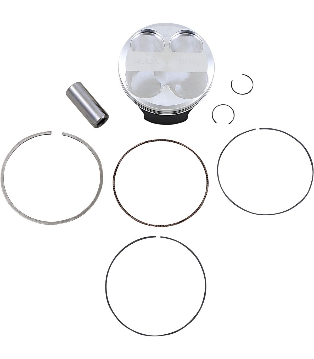 Piston Kit for 4 StrokeEnhanced piston pin oiling slots, radial boss machining, and annular grooves for improved wrist pin lubricationLightweight piston with a tight piston wall clearance for a quieter running engineSkirt coated for reduced friction and improved break in performanceRing land treatment for improved ring seal and oil controlDouble bridged forging design where notedKit includes piston, rings, wrist pin and pin locksDouble bridge forging.