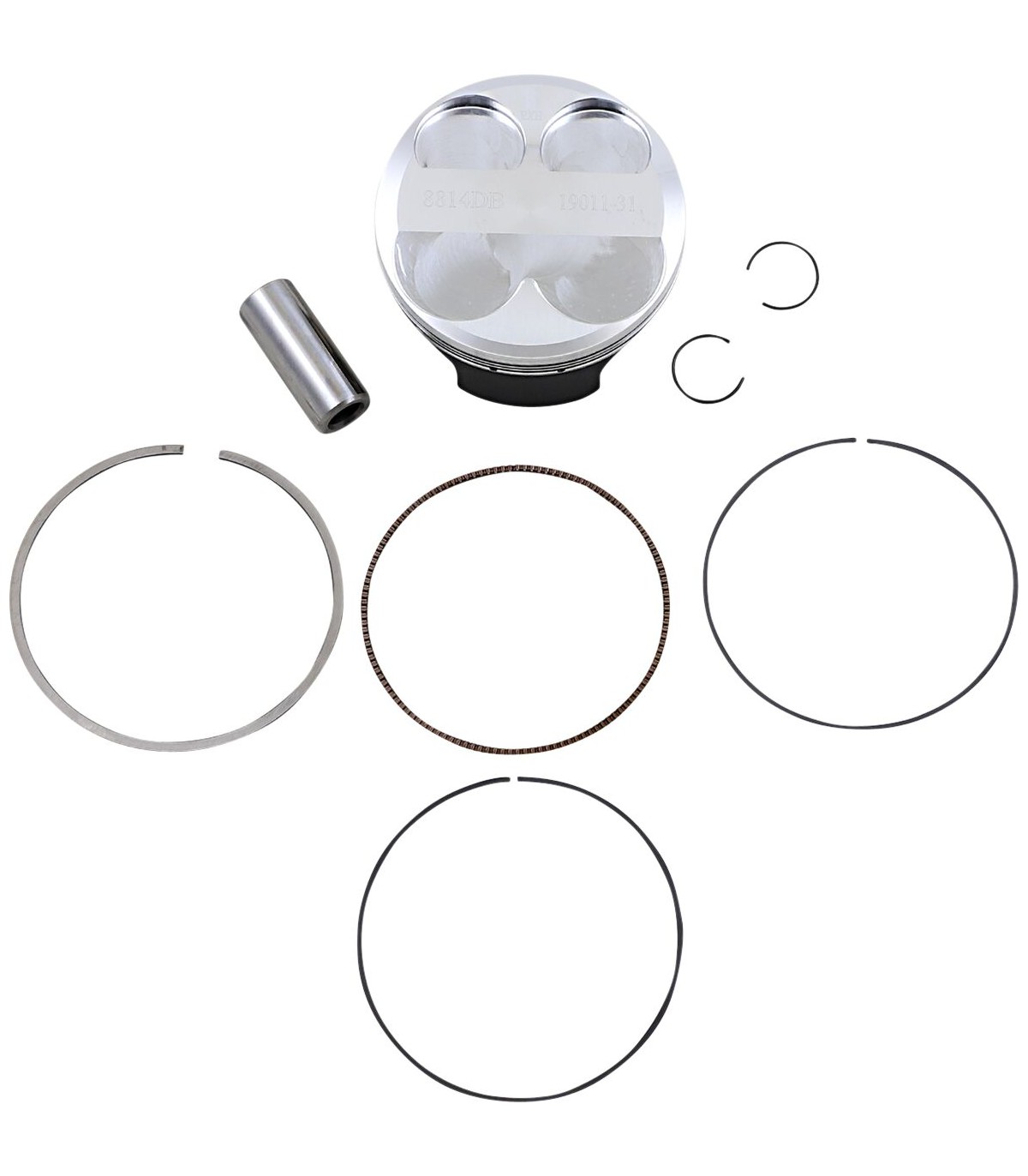 Piston Kit for 4 StrokeEnhanced piston pin oiling slots, radial boss machining, and annular grooves for improved wrist pin lubricationLightweight piston with a tight piston wall clearance for a quieter running engineSkirt coated for reduced friction and improved break in performanceRing land treatment for improved ring seal and oil controlDouble bridged forging design where notedKit includes piston, rings, wrist pin and pin locksDouble bridge forging.