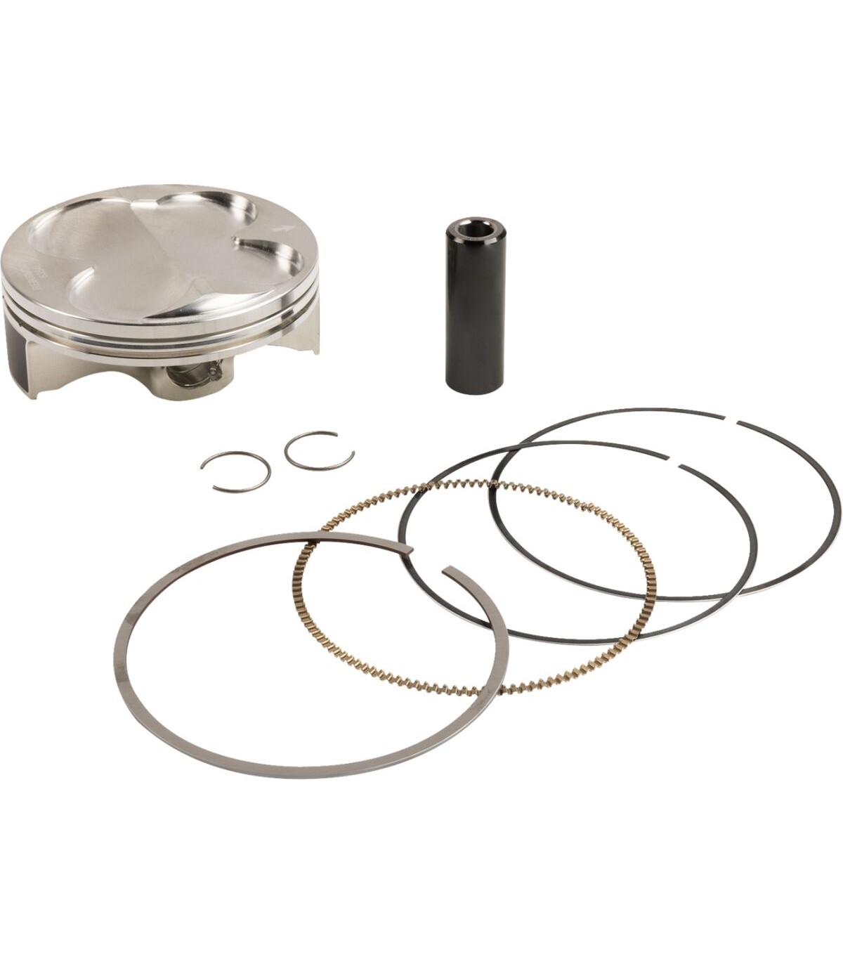 Racer Elite™ 4-Stroke Series PistonR&D developed to provide dyno-proven power gainsAsymmetric skirt design for improved wear and even loading on major thrust skirtPrecision fit ring; custom-lapped compression ring for improved power100% billet machined for superior strength-to-weight ratio and optimized fitHigh compression (14:1 for 450cc, 14.5:1 for 250cc) for maximum torque and throttle responseDome design improves flame travel to maximize air/ fuel burn efficiencyDLC-coated piston pin reduces friction and improves scuff resistanceEnhanced pin oiling for improved lubrication and reduced frictionPressure seal groove reduces ring lifting and power lossArmorGlide® skirt coating reduces friction for quieter operation, improved scuff resistancePistons include rings, pin, and circlips