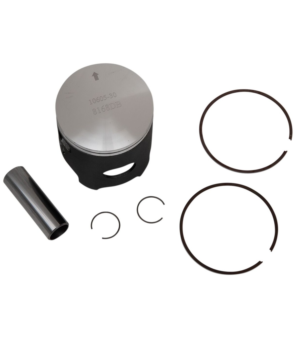 Kit de piston pour 2 tempsLes pistons disposent d’un revêtement permanent de haute qualité sur la jupe pour réduire la friction et le jeu de piston, pour des performances silencieuses et amélioréesLes kits de piston pour moteurs 2 temps comprennent un piston, des segments, un axe et des circlips.With intake window.