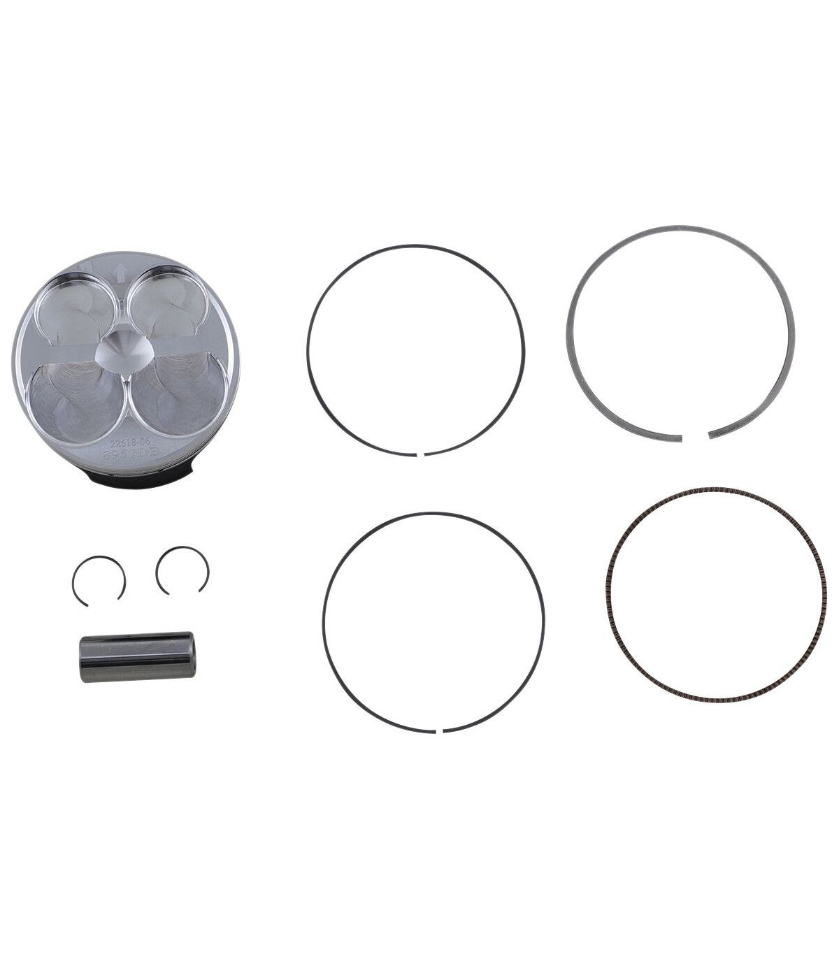 Piston Kit for 4 StrokeEnhanced piston pin oiling slots, radial boss machining, and annular grooves for improved wrist pin lubricationLightweight piston with a tight piston wall clearance for a quieter running engineSkirt coated for reduced friction and improved break in performanceRing land treatment for improved ring seal and oil controlDouble bridged forging design where notedKit includes piston, rings, wrist pin and pin locksDouble bridge forging.