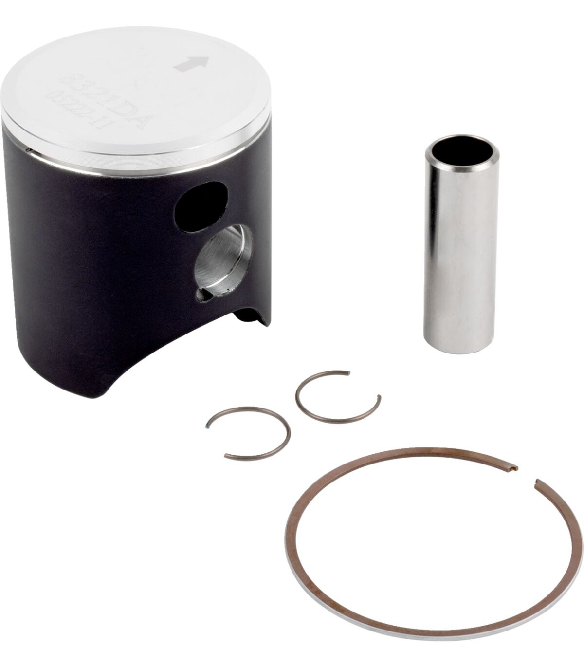 Kit de piston pour 2 tempsLes pistons disposent d’un revêtement permanent de haute qualité sur la jupe pour réduire la friction et le jeu de piston, pour des performances silencieuses et amélioréesLes kits de piston pour moteurs 2 temps comprennent un piston, des segments, un axe et des circlips.Kit Includes: • Piston #8321DA • Ring Set #RSB5400 • Wrist Pin #WP032 • Retaining Clips #CW15