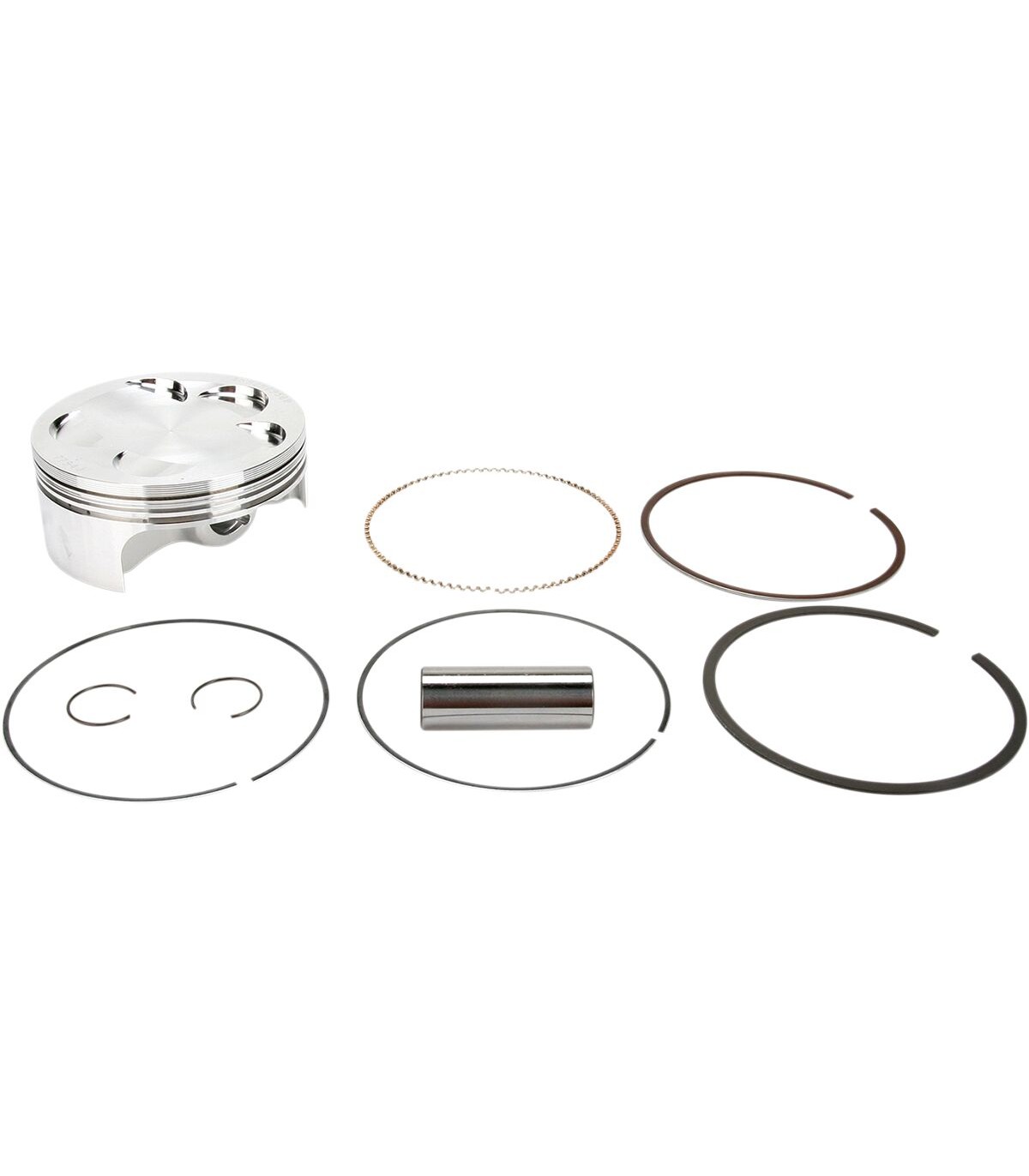 Piston Kit Forged Series for 4-StrokeForged 4-stroke piston is designed for each specific engine application and built to the tightest tolerances for the ultimate combination of performance and strengthDedicated forgings allow for optimized strength-to-weight ratioIdeal for multiple purpose ridingKit includes piston, wrist pin, rings and circlipsKit Includes: