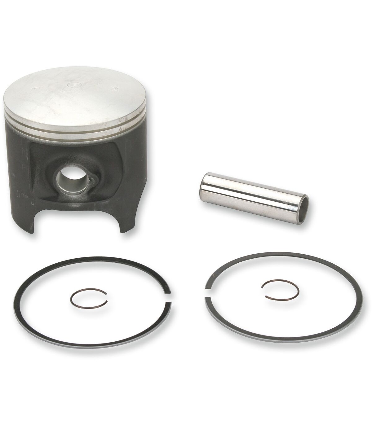 Piston Kit for 2-StrokeOversized piston follows manufacturer piston to cylinder wall clearancesPrecision machined on state of the art CNC equipmentMade with low expansion, low friction alloyKit includes piston, rings, circlips and wrist pinPiston has reed cut out.