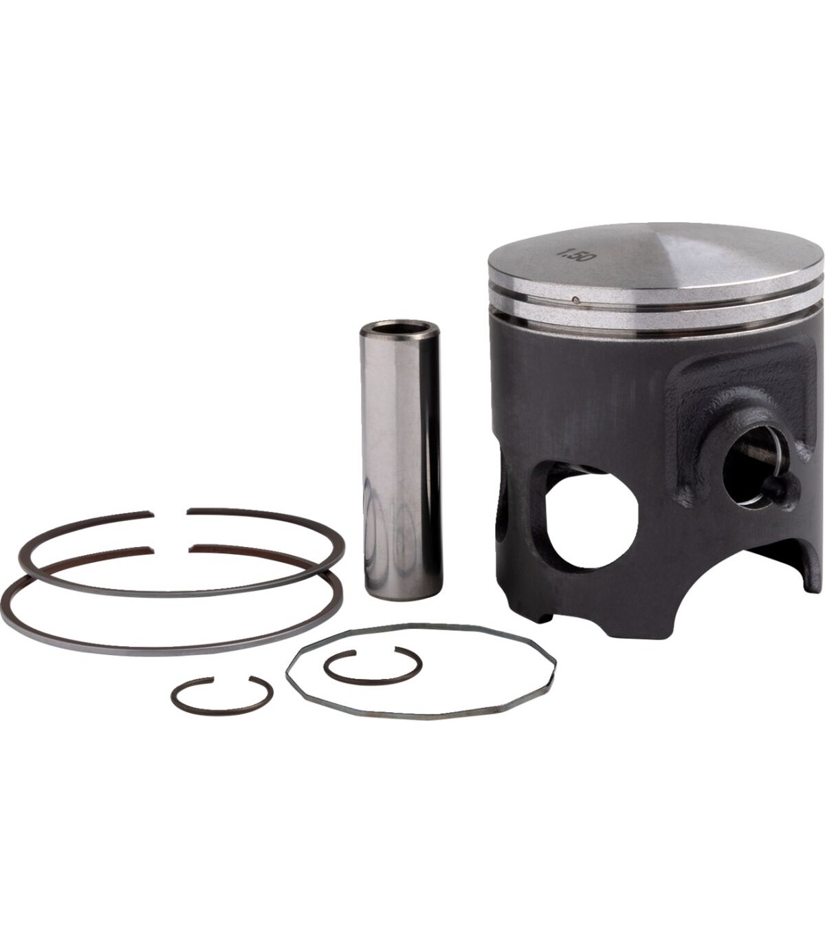 Piston Kit for 2-StrokeOversized piston follows manufacturer piston to cylinder wall clearancesPrecision machined on state of the art CNC equipmentMade with low expansion, low friction alloyKit includes piston, rings, circlips and wrist pinPiston has 2 intake holes and 2 reed cut outs.
