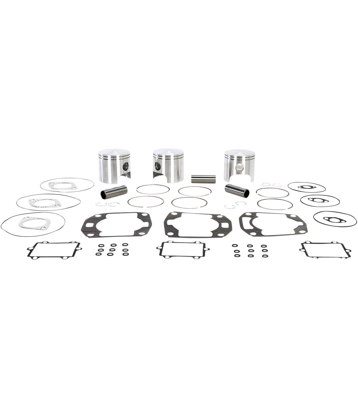 Piston Kit with GasketsAll the necessary components for overboring or rebuilding your top endKit includes forged pistons, rings, wrist pins, circlips and top end gasket setCylinder sleeves must be purchased separately.Fits Nikasil bore cylinders.