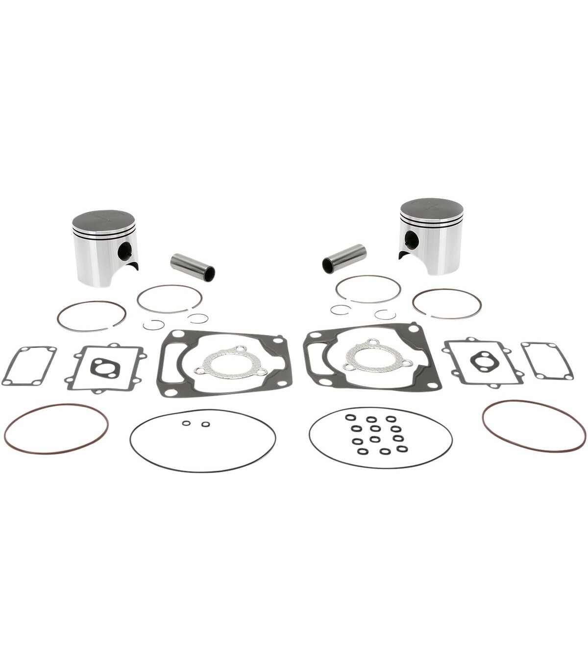 Piston Kit with GasketsAll the necessary components for overboring or rebuilding your top endKit includes forged pistons, rings, wrist pins, circlips and top end gasket setCylinder sleeves must be purchased separately.Fits Nikasil bore cylinders.
