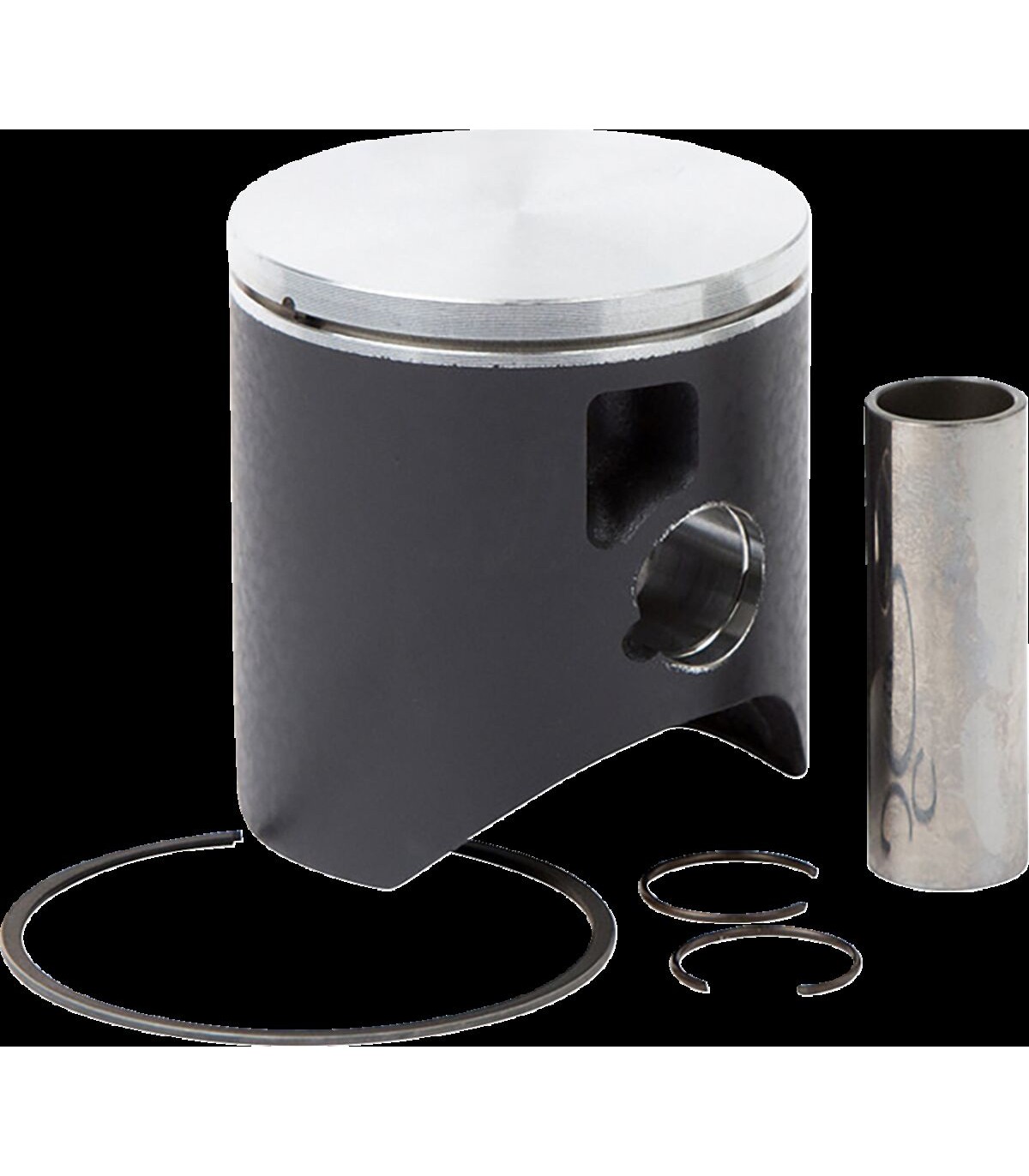 Piston Kit Cast Replica for 2 StrokePiston is heat treated with a T-5 hardening and tempering cyclePiston skirt is coated with a high-tech Molybdenum Disulphite coating for faster break-in time and increased piston lifeGravity-cast aluminum alloy (not forged) with 18% silicone contentCast OE replacement pistonKit includes piston, rings, wrist pin and circlipsKit Includes: