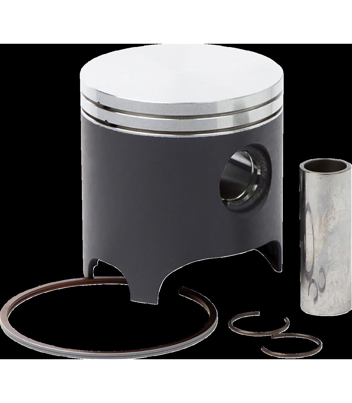 Piston Kit Cast Replica for 2 StrokePiston is heat treated with a T-5 hardening and tempering cyclePiston skirt is coated with a high-tech Molybdenum Disulphite coating for faster break-in time and increased piston lifeGravity-cast aluminum alloy (not forged) with 18% silicone contentCast OE replacement pistonKit includes piston, rings, wrist pin and circlipsKit Includes: