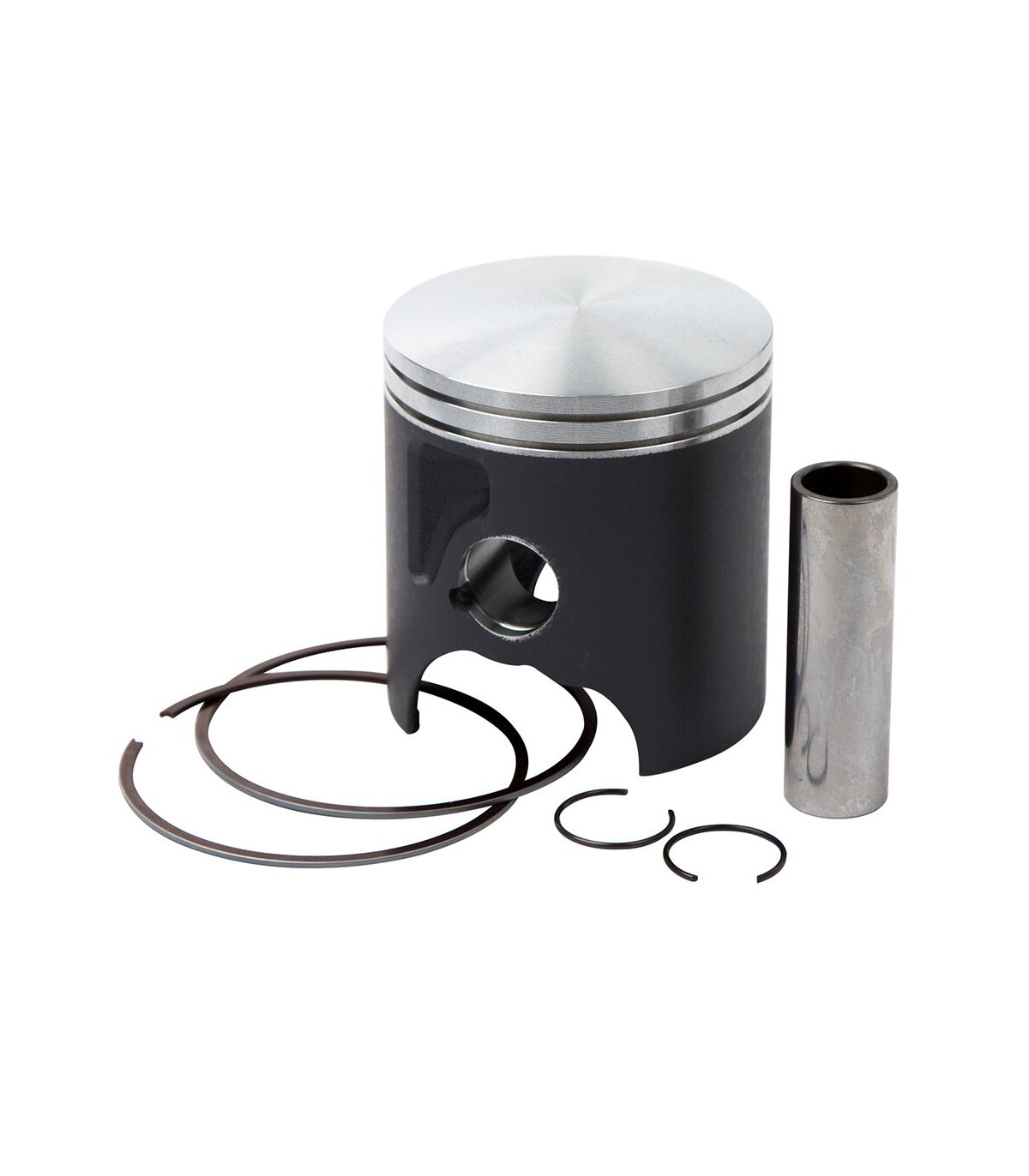 Piston Kit Cast Big Bore for 2-StrokeThe piston is heat-treated with a T-5 hardening and tempering cycleThe piston skirt is coated with a high-tech Molybdenum Disulphite coating for faster break in time and increased piston lifeCast piston is gravity-cast aluminum alloy (not forged) with 18% silicone contentBig bore piston increases engine's displacement, torque, and peak horsepowerPiston kit includes piston, rings, wrist pin and circlipsKit Includes:
