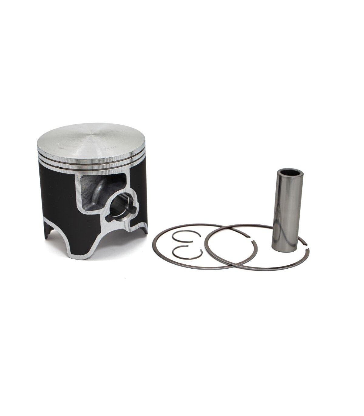 Piston Kit (Cast BigBore)Cast-BB – Cast piston in original OE form for big bore cylinderAll pistons are heat-treated with a T-5 hardening and tempering cycleAll piston skirts are coated with a high-tech Molybdenum Disulphite coating for faster break-in time and increased piston lifeCast piston kits are gravity-cast aluminum alloy (not forged) with 18% silicone content, which produces an extremely light but very strong pistonBig Bore pistons increase engine’s displacement, torque, and peak horsepowerReplacement two-stroke piston rings sold individually; four stroke piston rings sold as a setSize Over Standard: + 5.60 mm