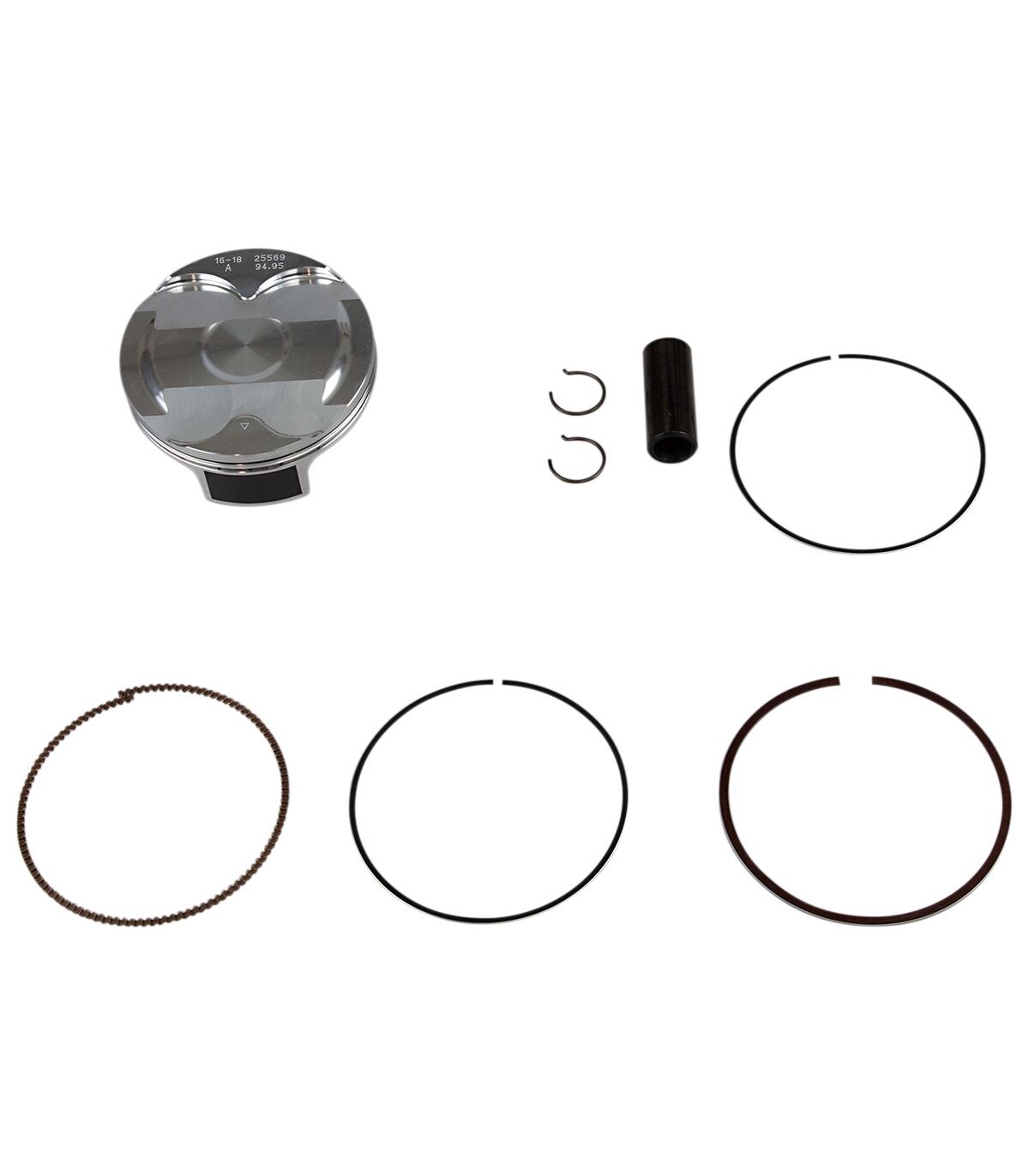 Piston Kit Forged High Compression for 4-StrokeThe piston is heat-treated with a T-5 hardening and tempering cycleThe piston skirt is coated with a high-tech Molybdenum Disulphite coating for faster break in time and increased piston lifeForged high compression piston improves power and torque across entire rpm rangePiston kit includes piston, rings, wrist pin and circlipsKit Includes: