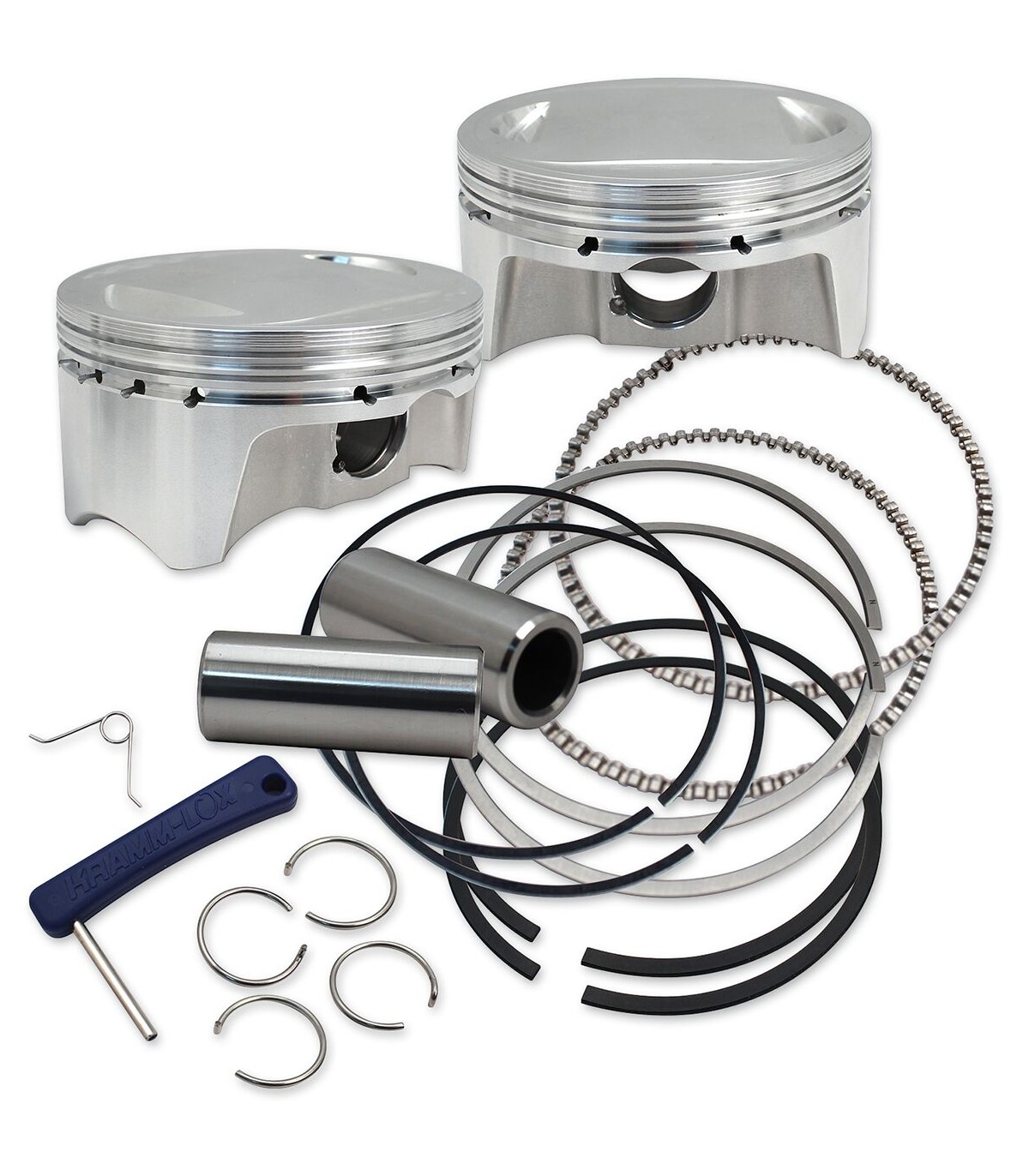 Big Bore Forged Piston KitPistons are compatible with stock rods with tapered wristpin endsStock cylinders may be bored to accommodate larger pistonBore cylinders to nominal diameter +/- 0.0005" for correct clearanceWorks with 4-3/8" stroke flywheels to convert 96" or 103" to 107" displacement with 10.4:1 compression with stock heads.