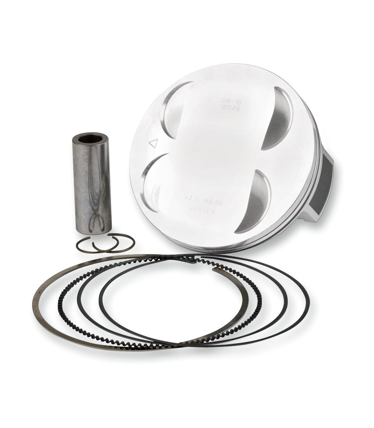 Piston Kit Forged Replica for 4 StrokeThe piston is heat-treated with aT-5 hardening and tempering cycleThe piston skirt is treated with a Molybdenum Disulphite coating for a faster break-in time and increased piston lifeForged replica piston is a forged OE replacementReplica piston and all rings are OEM replacementPiston kit includes piston, ring, wrist pin and circlipsKit Includes: