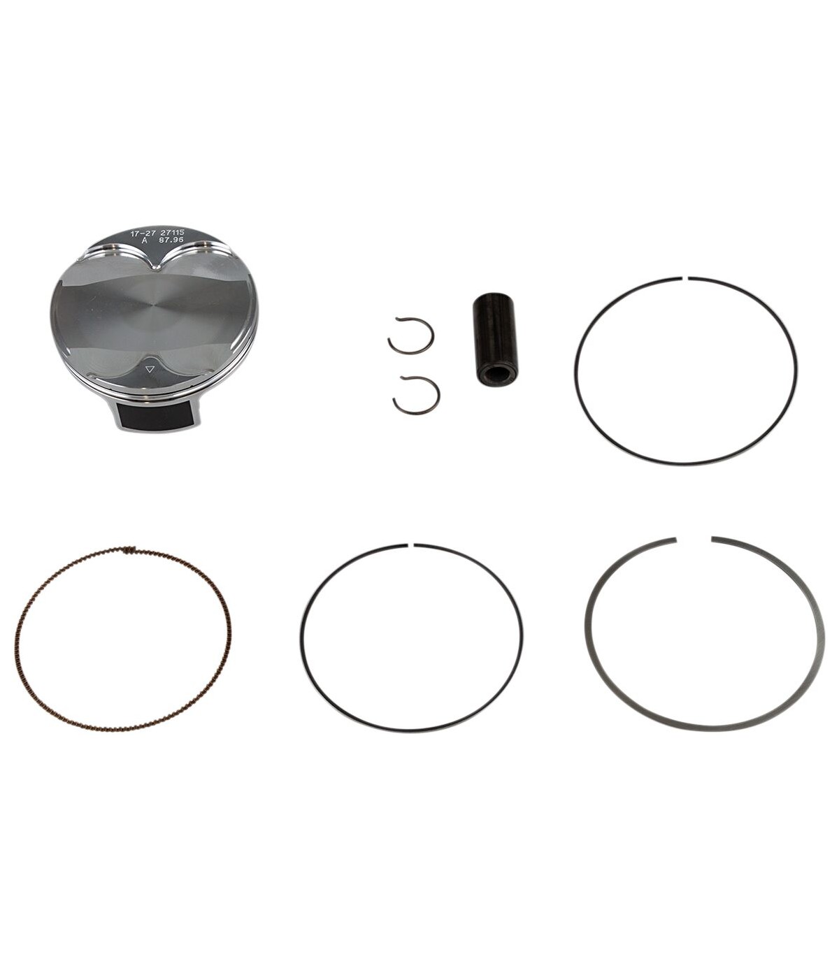 Piston Kit Forged Replica for 4 StrokeThe piston is heat-treated with aT-5 hardening and tempering cycleThe piston skirt is treated with a Molybdenum Disulphite coating for a faster break-in time and increased piston lifeForged replica piston is a forged OE replacementReplica piston and all rings are OEM replacementPiston kit includes piston, ring, wrist pin and circlipsKit Includes: