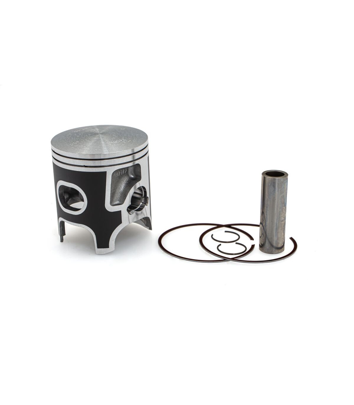 Piston Kit (Cast BigBore)Cast-BB – Cast piston in original OE form for big bore cylinderAll pistons are heat-treated with a T-5 hardening and tempering cycleAll piston skirts are coated with a high-tech Molybdenum Disulphite coating for faster break-in time and increased piston lifeCast piston kits are gravity-cast aluminum alloy (not forged) with 18% silicone content, which produces an extremely light but very strong pistonBig Bore pistons increase engine’s displacement, torque, and peak horsepowerReplacement two-stroke piston rings sold individually; four stroke piston rings sold as a set
