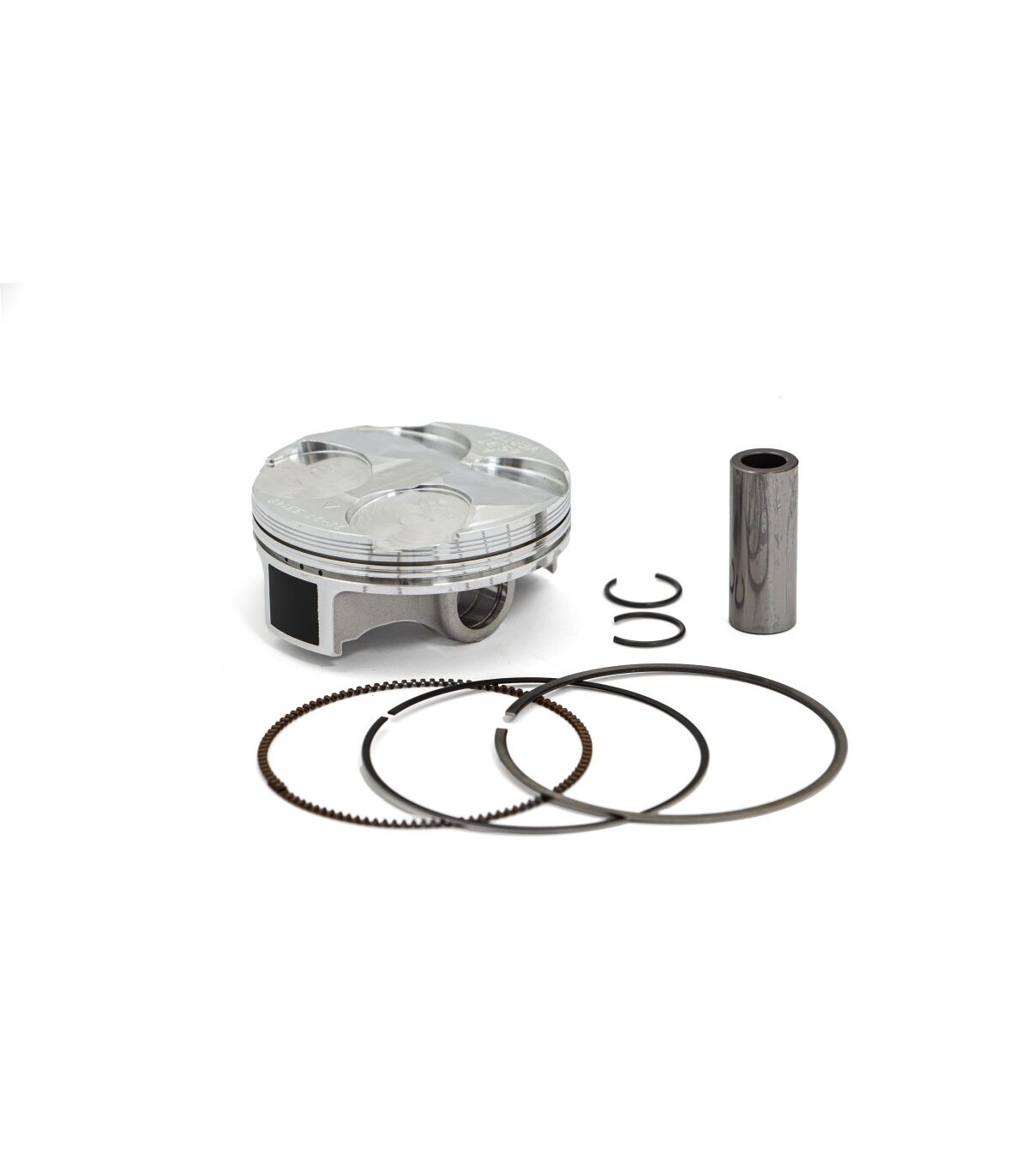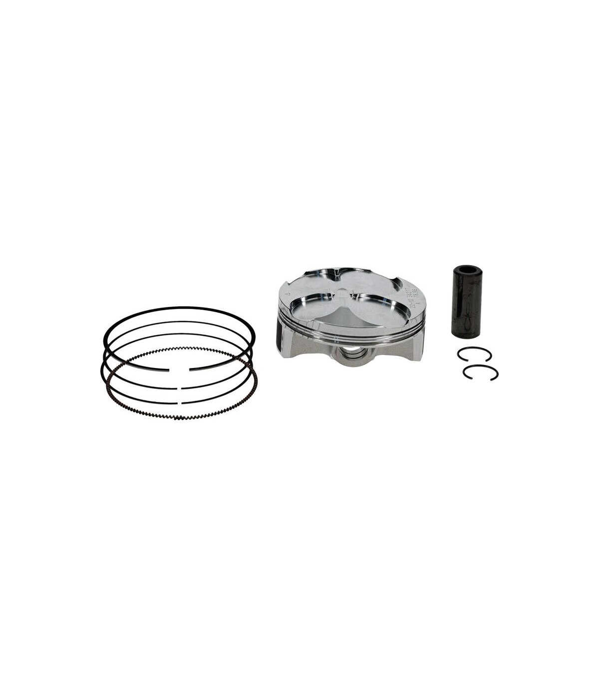 Kit de piston (forgé/à haute compression)Pro-HC – Piston forgé développé avec la technologie Vertex et compression hauteTous les pistons sont traités thermiquement avec un cycle de renforcement et de durcissement T-5Les jupes sont traitées avec un revêtement en Molybdène disulfide high-tech pour un rodage plus rapide et une durée de vie du piston amélioréeLes pistons sont forgés à partir d’aluminium 2618 pour une endurance et une durée de vie supérieuresEn raison de la compression plus élevée, la puissance et le couple peuvent être améliorés sur toute la plage de régimeLes kits comprennent le piston, les segments, l’axe de piston et les circlipsSegments 2 temps de rechange vendus à l’unité ; segments 4 temps vendus par lot