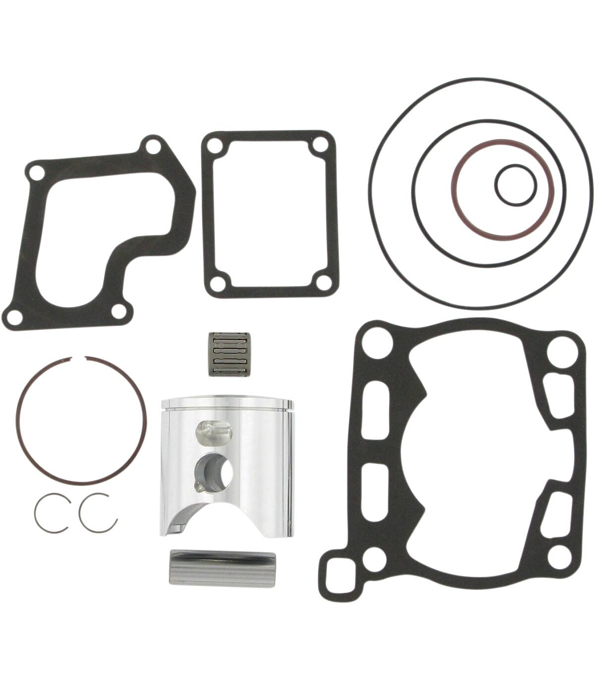 High Performance Piston Kit with Gaskets for 2-StrokeComplete piston kit includes pistons, rings, wrist pins, circlips and top-end gasket kit for one complete engineWiseco pistons can be fitted only with Wiseco ringsWiseco ring types are not interchangeable (i.e., CD is not interchangeable with LC).Cylinder sleeves must be purchased separately.Must use stock thrust washers.
