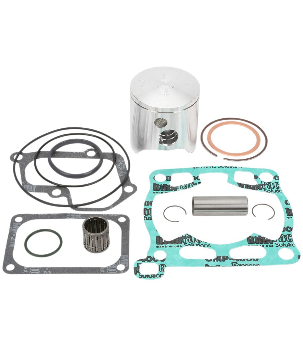 High Performance Piston Kit with Gaskets for 2-StrokeComplete piston kit includes pistons, rings, wrist pins, circlips and top-end gasket kit for one complete engineWiseco pistons can be fitted only with Wiseco ringsWiseco ring types are not interchangeable (i.e., CD is not interchangeable with LC).Cylinder sleeves must be purchased separately.Fits Suzuki Composite Electrochemical Material (SCEM) coated cylinder.