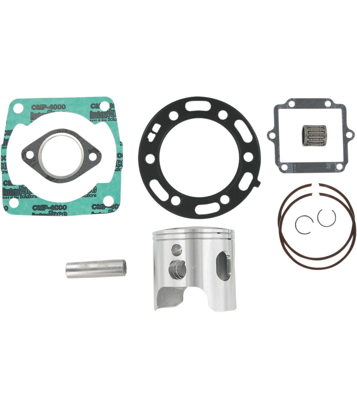 High Performance Piston Kit with Gaskets for 2-StrokeComplete piston kit includes pistons, rings, wrist pins, circlips and top-end gasket kit for one complete engineWiseco pistons can be fitted only with Wiseco ringsWiseco ring types are not interchangeable (i.e., CD is not interchangeable with LC).Cylinder sleeves must be purchased separately.Kit Includes: