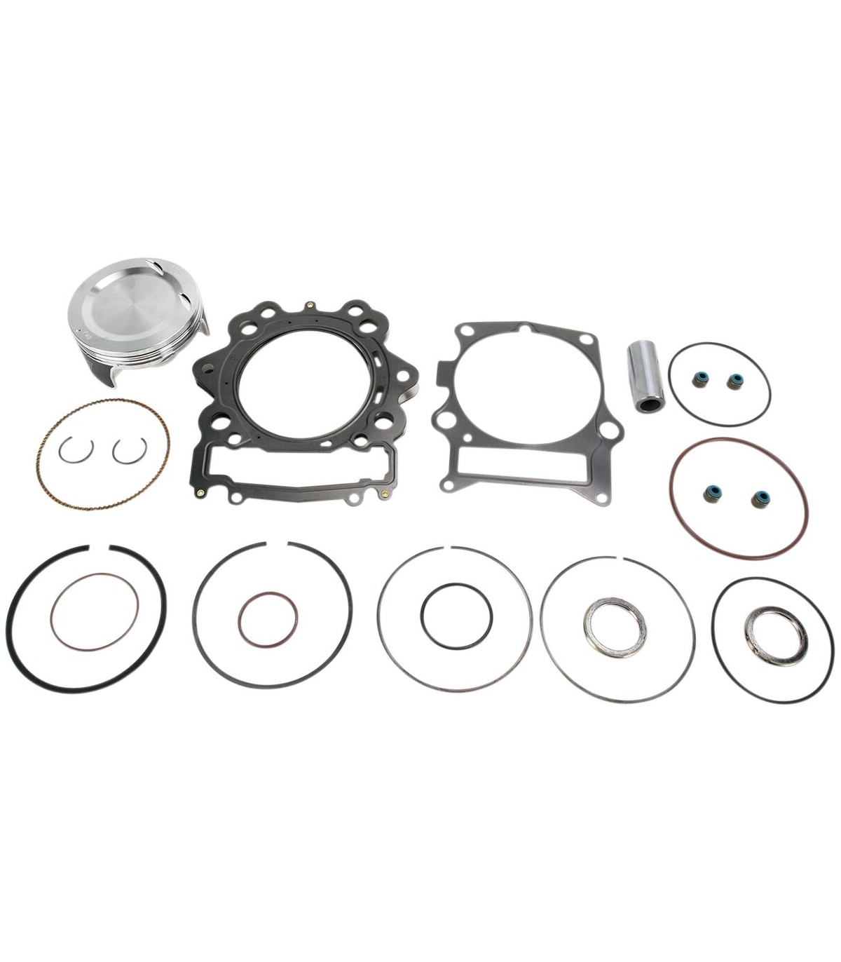 Kit de pistons haute performanceLes kits de piston complets contiennent des pistons hautes performances forgés, des segments, des axes de piston, des circlips et un kit de joint haut moteur, pour un moteur completLes types de segments Wiseco ne sont pas interchangeables (c’est-à-dire que le CD ne peut pas être remplacé par le LC) et conviennent uniquement aux pistons WisecoATTENTION : les pistons Wiseco ne peuvent s’ajuster qu'avec les segments Wiseco.Fits Nikasil bore cylinder. Kit Includes: • Piston Kit #4902M10200 • Ring Set #10200XS • Wrist Pin #S724 • Wrist Pin Retainer Set #W5860 • Gasket Kit #W6570