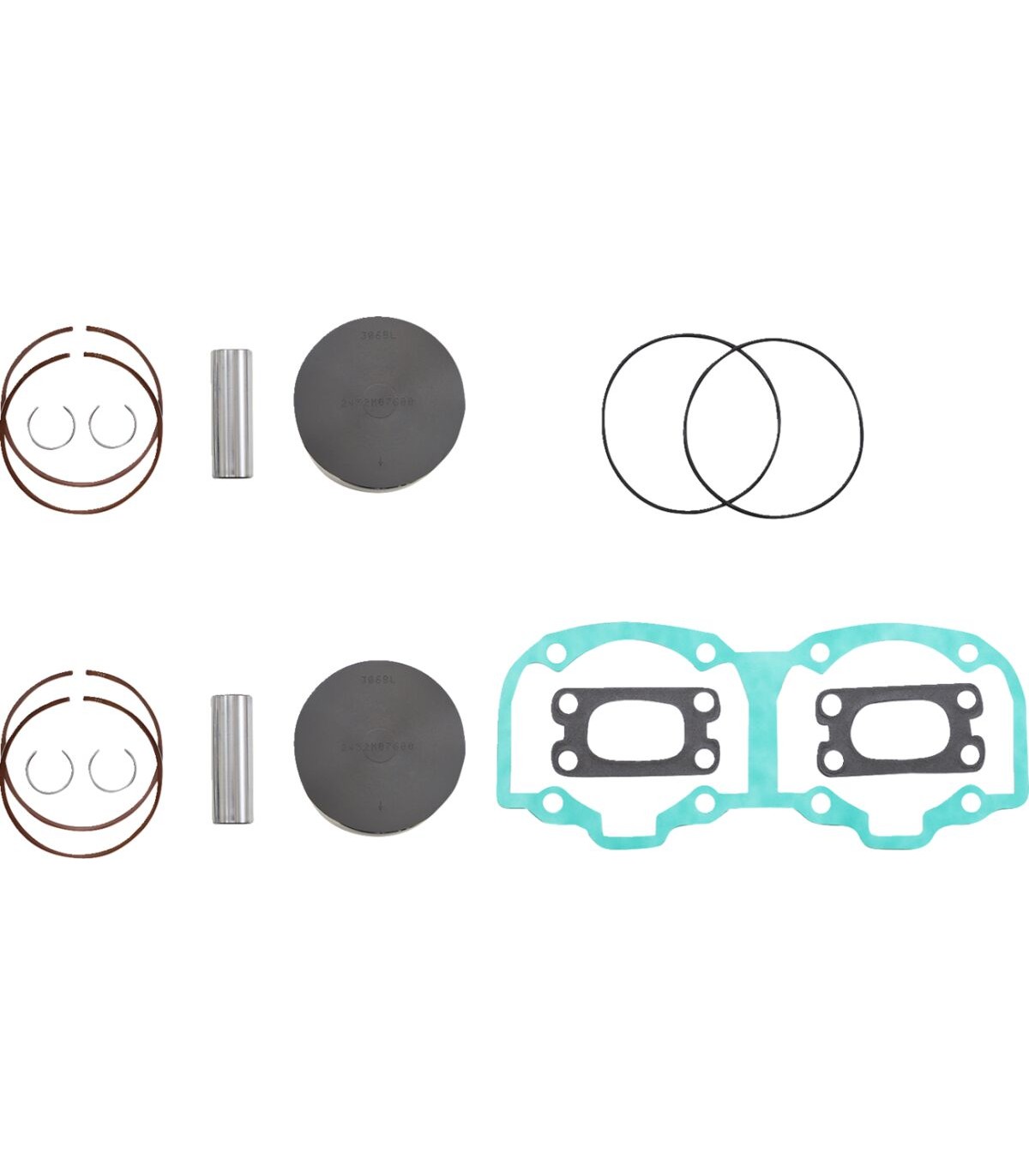 Piston Kit with GasketsAll the necessary components for overboring or rebuilding your top endKit includes forged pistons, rings, wrist pins, circlips and top end gasket setCylinder sleeves must be purchased separately.Fits cast iron bore cylinders.